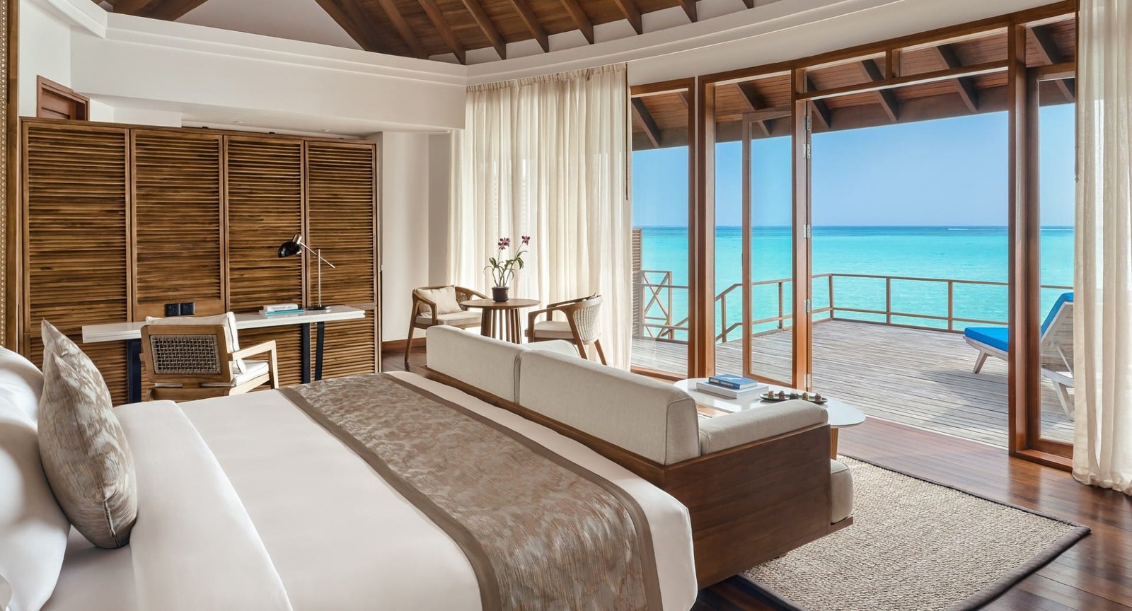 في هذا المنتجع الفاخر من فئة الخمس نجوم، تنتظركم مغامرات رائعة لكل أفراد العائلة، على الرمال الفضية، وفي البحر، وتحت سطح الماء. انطلق من فيلا الشاطئ المزودة بمسبح خاص، أو اقفز مباشرة من جناحك فوق الماء إلى البحيرة الشاطئية. استمتع بركوب الأمواج، والغوص، ونزهات على جزر مهجورة، ثم عُد إلى علاجات السبا الفاخرة وتجارب الطهي الراقية.
