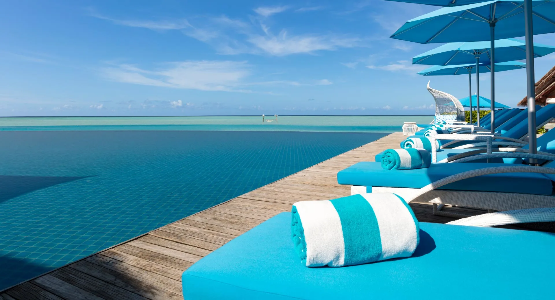 تجربة استثنائية تمزج بين التصميم العصري الأنيق، الرخام البارد، وأرضيات الساج الناعمة تحت قدميك، مع إطلالات ساحرة على الغروب. استمتع بالسباحة في البحيرة الزرقاء الطبيعية أسفل جناحك، أو استرخِ في مسبحك اللامتناهي على حافة المياه. دلّل نفسك بحمّام شمس على التراس الواسع في النهار، وتأمل السماء المرصعة بالنجوم ليلاً. هنا، فيلا خاصة فوق الماء في جزر المالديف تمنحك الصفاء والراحة المطلقة.