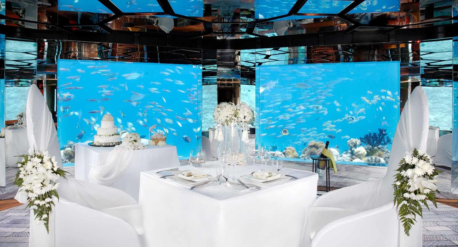SEA: تجربة لا تُنسى تحت الماء مع المأكولات الأوروبية المعاصرة. استمتع بمشاهدة أسماك القرش والسلاحف والأسماك الاستوائية أثناء تناول وجبتك تحت الماء في العالم.