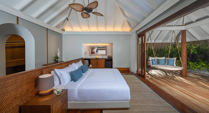 تقدم فيلل الشاطئ مع المسبح تجربة فاخرة بأسلوب الحياة على الرمال، على بُعد خطوات قليلة من الشعاب المرجانية النابضة بالحياة في جزر المالديف. الألوان الهادئة والمحايدة والخامات الطبيعية تمنح شعورًا بالسكينة، بينما توفر الصالة الخارجية الموسعة والحمام الهادئ مساحة مثالية للاسترخاء التام. مصممة خصيصًا للأزواج ومحبي العافية، لتجربة حياة جزيرة معاصرة ومُعاد تصورها.