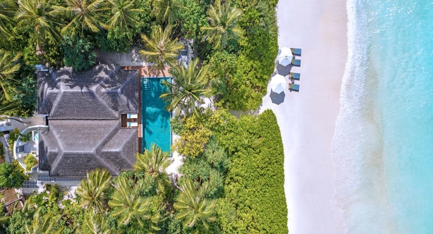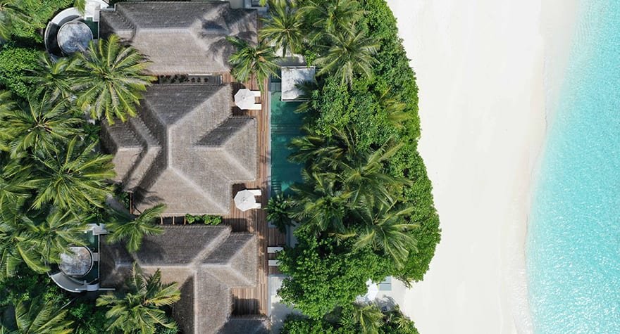 تحيط به مياه الفيروز النقية التي تمتد إلى الأزرق الياقوتي، يظهر منتجع أنانتارا كيهافاه الفاخر وجزيرته ذات الرمال البيضاء النقية من المحيط وكأنه سراب.