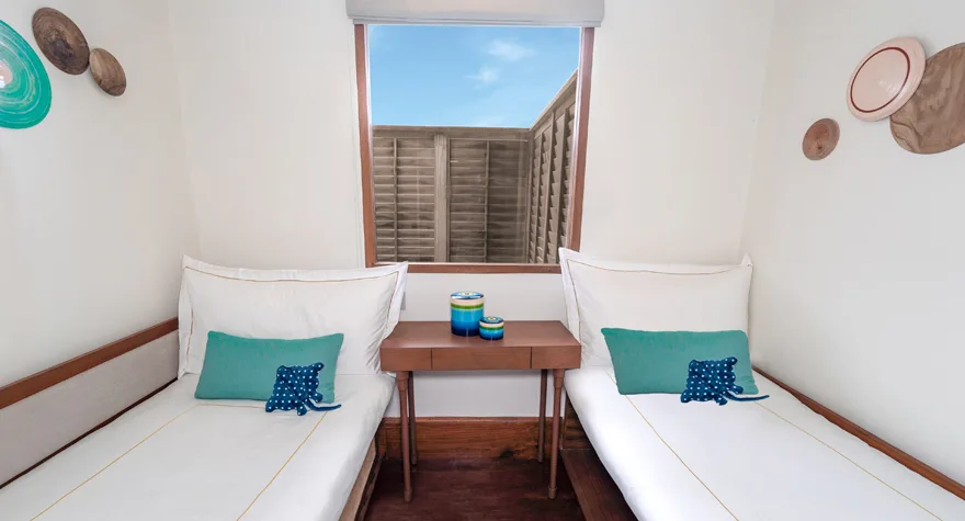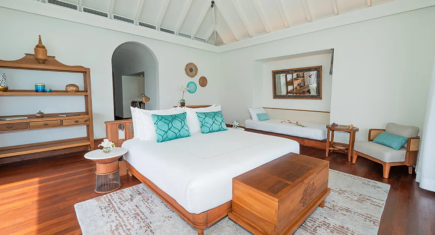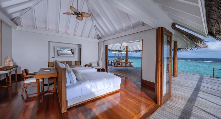 عِيشوا أرقى أنماط الإقامة فوق البحيرة، مع غرفة نوم رحبة للوالدين توفر أقصى درجات الراحة، بينما ينعم الأطفال بنوم هادئ في فيلتهم العائلية فوق الماء. دلّلوا أنفسكم بالاسترخاء في حوض الاستحمام الزجاجي الغائر الشهير أو في مسبحكم الخاص، بينما تنعمون بإطلالات بانورامية خلابة على المحيط الهندي.