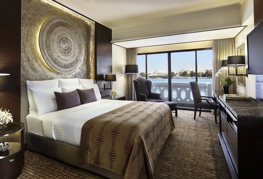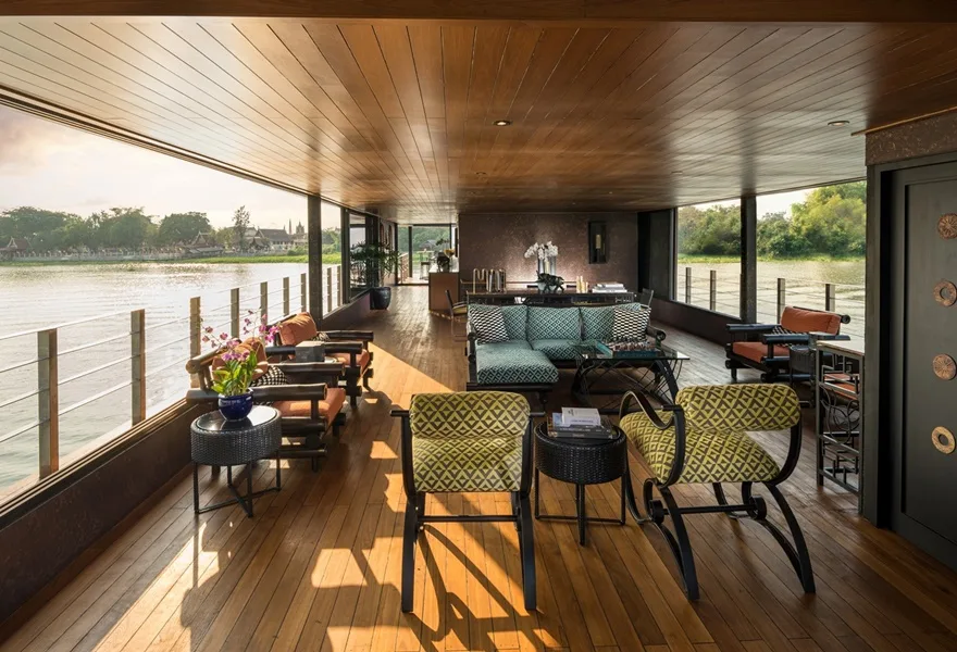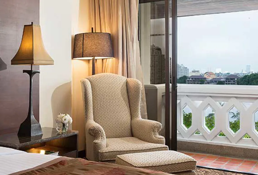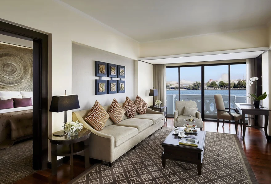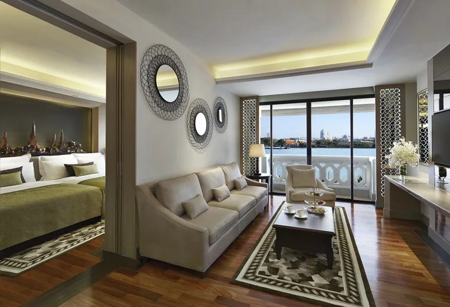 يمنحك الجناح شرفة خاصة ملتفة توفر إطلالة بانورامية ساحرة على نهر تشاو فرايا وأفق المدينة الممتد، لتعيش تجربة لا مثيل لها بين أجمل المناظر التي يمكن أن يقدمها فندق مطل على نهر بانكوك. يُعد هذا الجناح خيارًا مثاليًا لعشّاق الإطلالات الخلابة والرفاهية الهادئة، حيث يندمج فيه سحر الطبيعة مع أناقة التصميم ليمنحك إقامة لا تُنسى على ضفاف النهر.