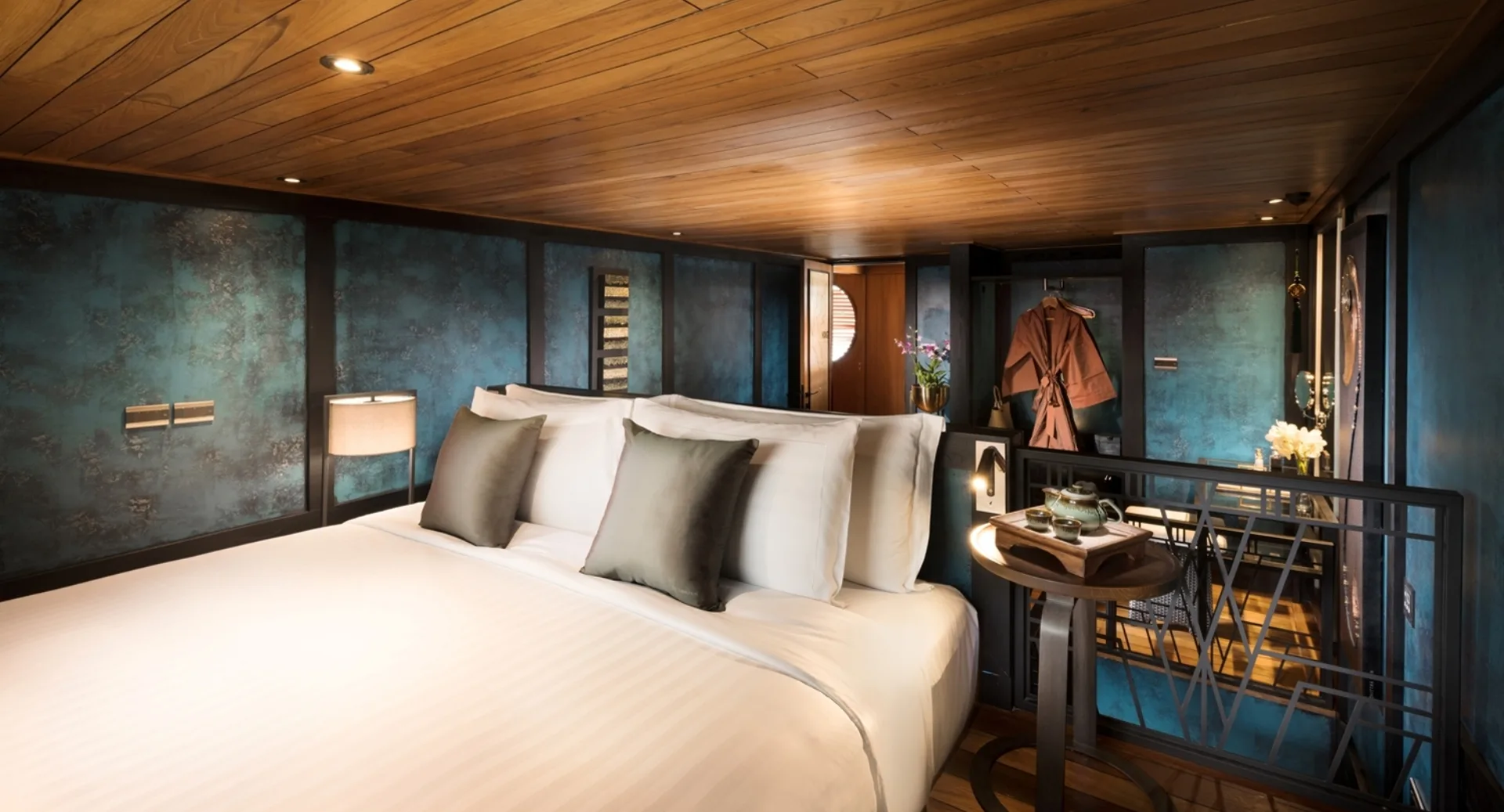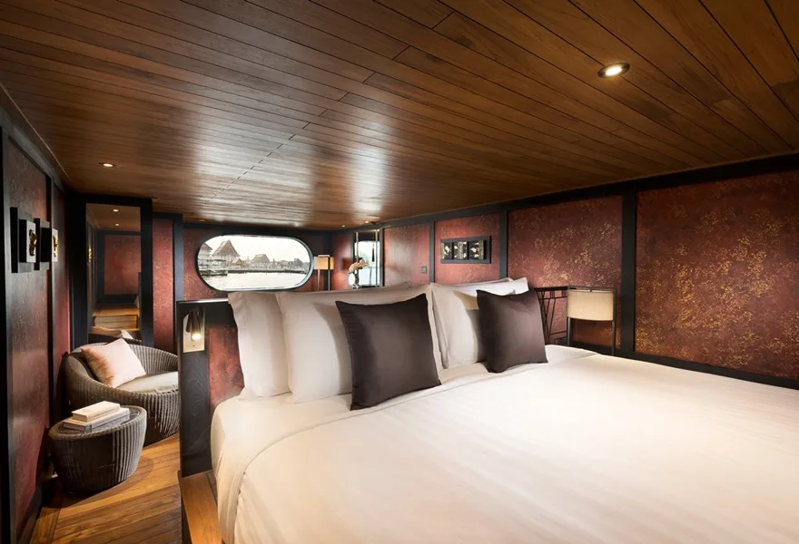 يضمّ القارب الفاخر Loy River Song أربع غرف فندقية مكيفة تتراوح مساحاتها بين 27 و36 مترًا مربعًا، وتستوعب كل غرفة شخصين كحد أقصى. تتميز غرفتا Nan وYom بممر خاص يربط بينهما عبر باب منزلق، ما يجعلها مثالية للعائلات الراغبة في الإقامة معًا. تجمع كل غرفة بين الأناقة العصرية واللمسات الهادئة، حيث تضفي أفخم أنواع الأقمشة والزهور الطبيعية المنسّقة حديثًا جوًا حالماً من الراحة والفخامة.