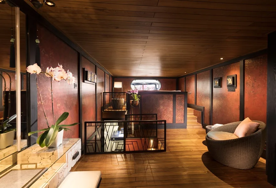 استمتع بإحساس المنزل داخل ملاذك العائم الخاص على متن القارب الفاخر Loy Dream، المصمم بأناقة من الماهوجني الساطع وخشب الساج الفاخر. تضم كل غرفة مساحة معيشة مكيفة بالكامل تبلغ 25 مترًا مربعًا، مستوحاة من سحر سيام القديمة بتفاصيلها الكلاسيكية الراقية. تتميز الحمّامات الداخلية بألوان بحرية مريحة وتحتوي على صابون عشبي ومجفف شعر وجميع وسائل الراحة الحديثة.
