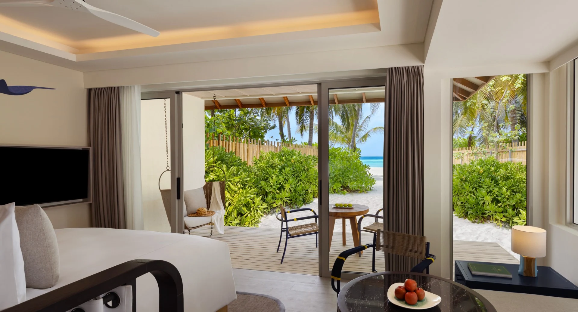 استمتع بروعة الحياة على الشاطئ مباشرة من غرفتِك، حيث يمكنك الانطلاق من التراس الخاص بك إلى الرمال الناعمة ثم الغوص في مياه المحيط المنعشة، قبل العودة للاسترخاء في حوض استحمام عميق ودافئ. ابدأ يومك كل صباح على إطلالة شروق شمس مذهلة فوق المحيط لتجربة تبقى في الذاكرة.