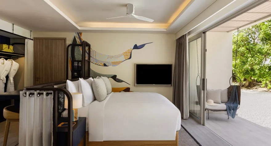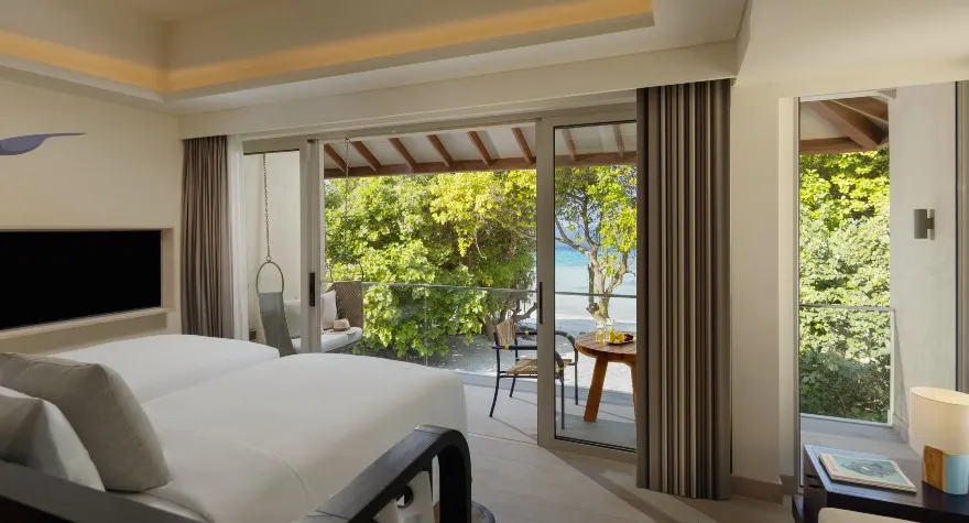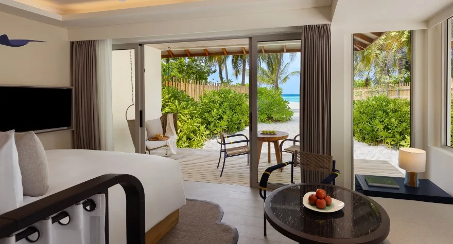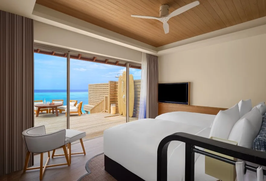 واسعة، منعشة، بتصميم عصري، وتحتوي على وسائل راحة عصرية لتوفير إقامة مريحة في منتجع خمس نجوم في المالديف. يمكن اختيار غرفة بإطلالة على المحيط مع شرفة خاصة، أو غرفة على الشاطئ مع منصة خارجية خاصة.