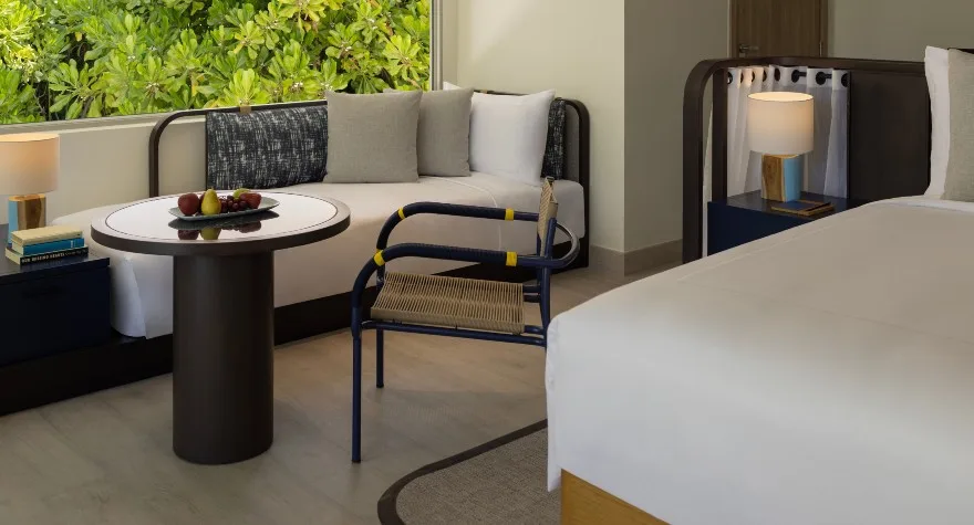 يمنحكم هذا الجناح الأنيق والعصري من غرفتي نوم تجربة مثالية للعائلات في عطلة أو للأزواج المسافرين معًا. استمتعوا بحمّام الشمس على التراس الخاص، وتناولوا العشاء تحت أضواء النجوم مع نسيم البحر الدافئ لليالي المالديف الحالمة.
