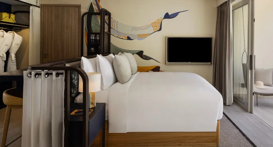 غرف واسعة ومضيئة تمنحك إحساسًا بالراحة والفخامة مع إطلالات خلابة على المحيط. استمتع بالاسترخاء على أريكة داخلية مريحة أو على أرجوحة شُرفة مخصصة لشخصين. ولإقامة عصرية، توفر الغرفة تلفزيون بشاشة مسطحة 50 بوصة مع أحدث عروض نتفلكس، إلى جانب ركن مشروبات خفيف يضم مأكولات صحية ومشروبات مختارة من مختلف أنحاء العالم.