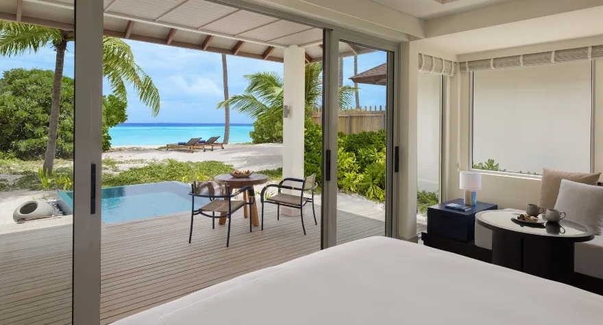 ارتقِ بإقامتك في فيلا شاطئية خاصة بمسبح في المالديف، محاطة بأشجار جوز الهند. مع جميع التجهيزات العصرية وخدمة الغرف عند الطلب، يمكنك الاختباء والاستمتاع بالخصوصية التامة دون الحاجة لمغادرة فيلتك.