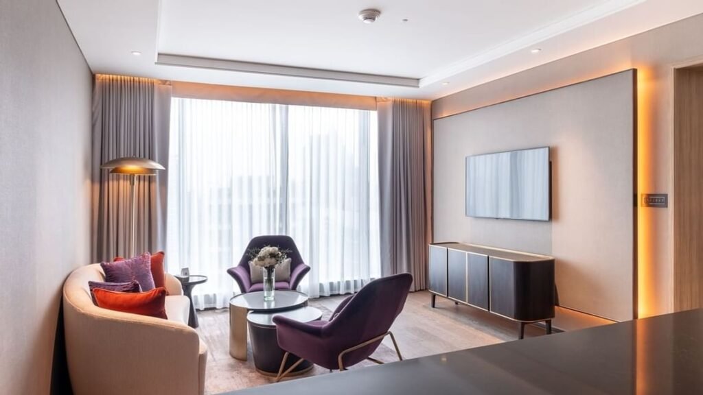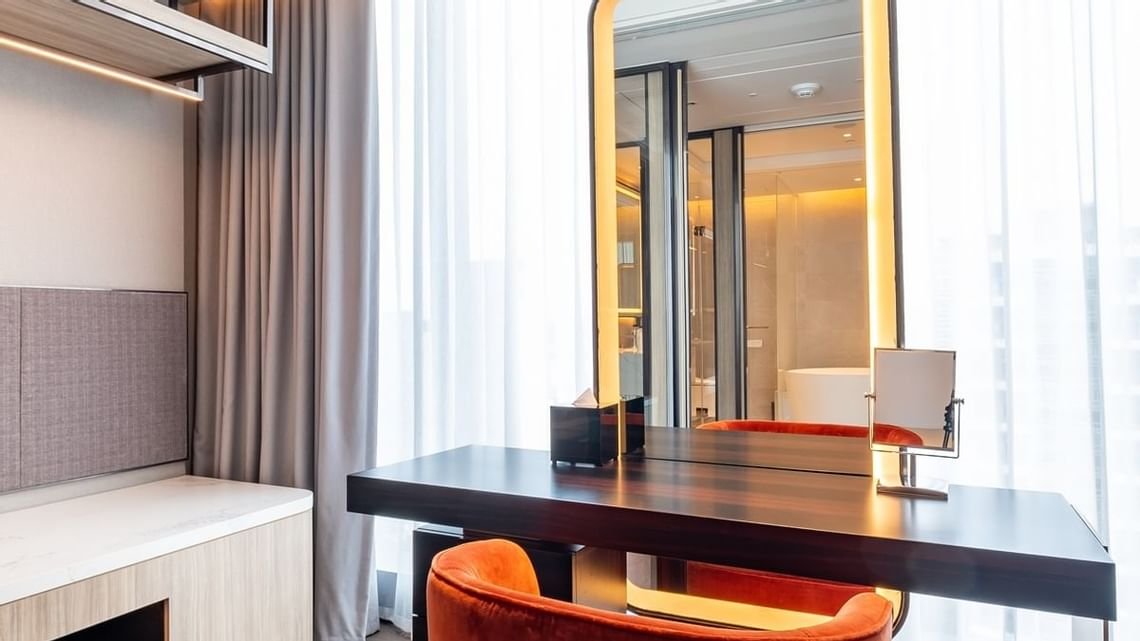 تقع جميع الوحدات بين الطابقين 11 و33، وتتميز بنوافذ تمتد من الأرض حتى السقف مع عزل صوتي كامل وإطلالات خلابة على المدينة، إلى جانب ستائر كهربائية وستائر تعتيم لضمان راحة مثالية.
