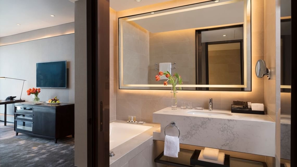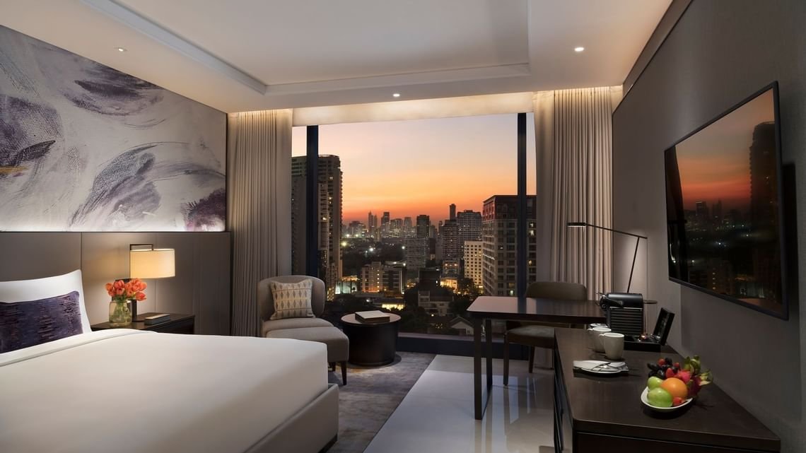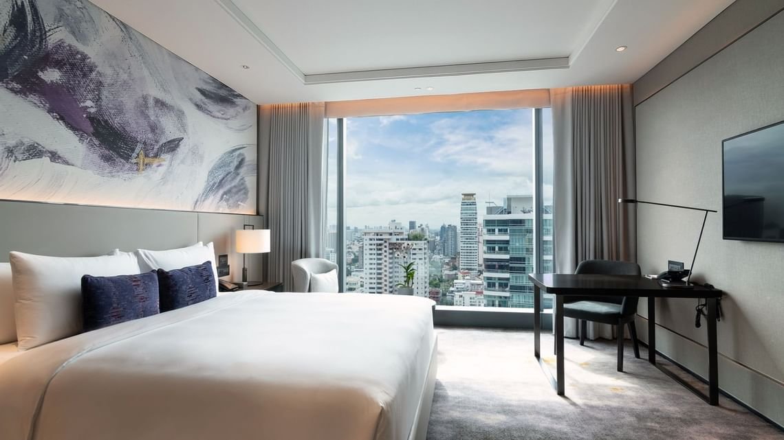 تقع الغرف التنفيذية في الأدوار العليا من فندق كارلتون بانكوك سوخومفيت، حيث يمكن للضيوف الاستمتاع بإطلالة بانورامية خلابة على مدينة بانكوك. تجمع الغرفة بين الأناقة والراحة لتوفّر تجربة إقامة راقية ومتكاملة.