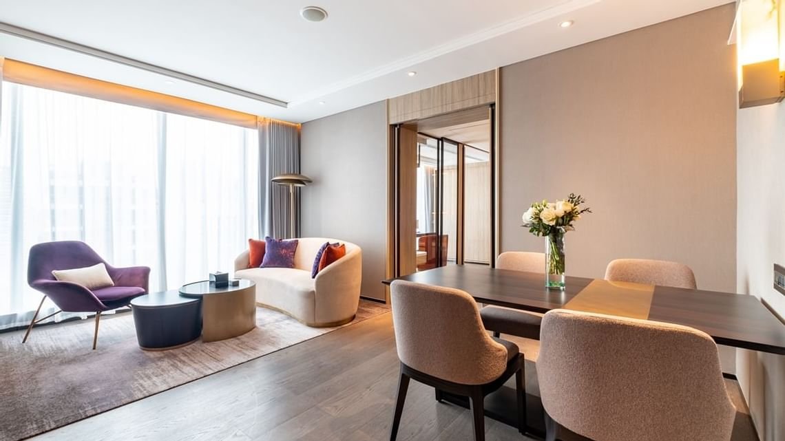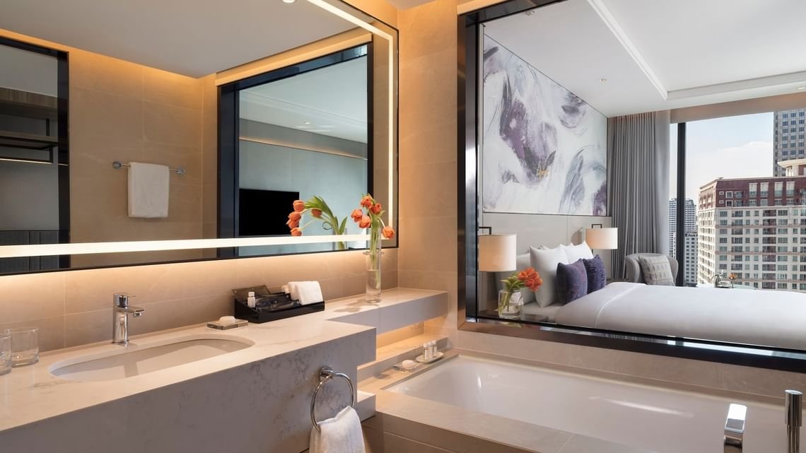 يقع الجناح الترفيهي في الطابق 30 ويوفّر إطلالات بانورامية رائعة على مدينة بانكوك. يتميز الجناح بمساحته الكبيرة ويضم غرفة معيشة تحتوي على منطقة جلوس ومكتب عمل، وغرفة طعام مستقلة، وغرفة نوم واسعة بسرير ملكي مزود بمرتبة Sealy Posturepedic، إضافة إلى غرفة تبديل ملابس.