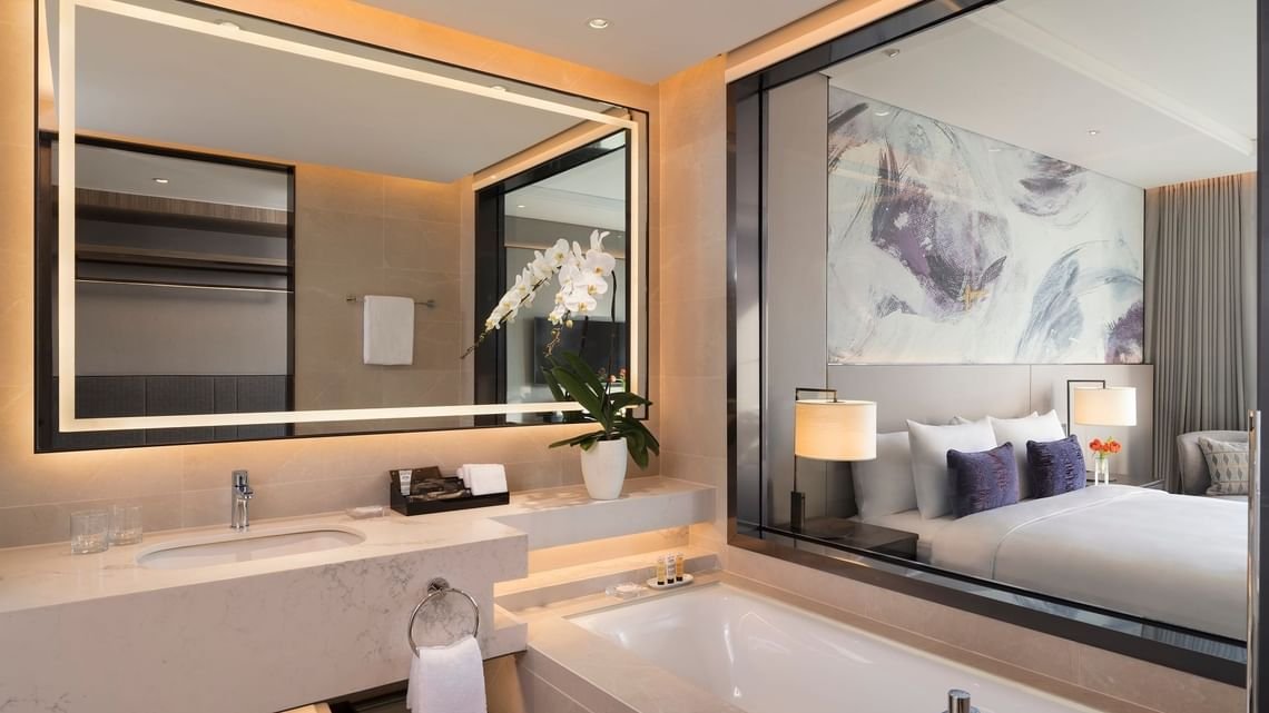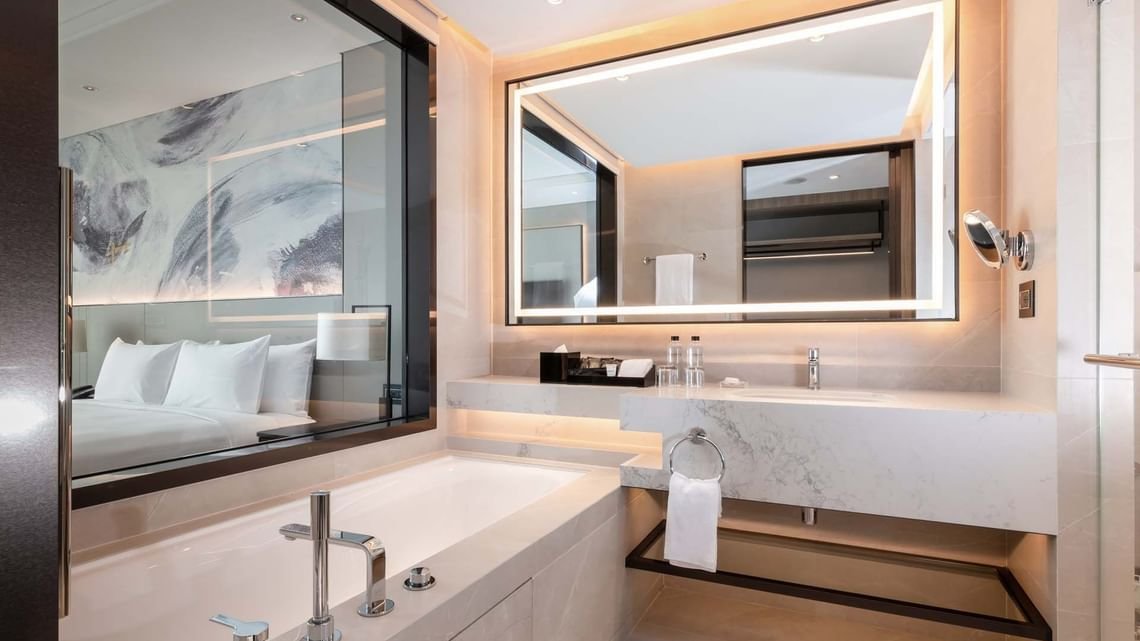 صُمم جناح كارلتون بغرفتي نوم خصيصًا لذوق النزلاء الرفيع الذين يبحثون عن تجربة إقامة تجمع بين رحابة المساحة والتصميم العصري الأنيق والاهتمام بأدق التفاصيل، مما يخلق أجواء راقية تنبض بالراحة والخصوصية. يضم الجناح غرفتي نوم واسعتين تحتويان على أسرّة بحجم كينغ مع مراتب Sealy Posturepedic الفاخرة، بالإضافة إلى غرفة تبديل ملابس، وغرفة معيشة أنيقة مستقلة، وغرفة طعام فسيحة مثالية للعائلات أو الاجتماعات الهادئة.