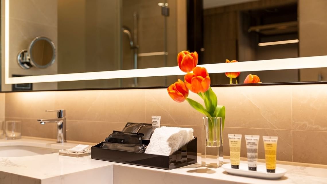 وتعتمد الغرف على أنظمة ذكية لتقليل استهلاك الطاقة مثل الإضاءة المستشعرة للحركة، بالإضافة إلى تقنية IPTV التي توفر ترفيهًا متنوعًا وخدمات ضيافة متكاملة مع خاصية الربط عبر Chromecast وApple TV.