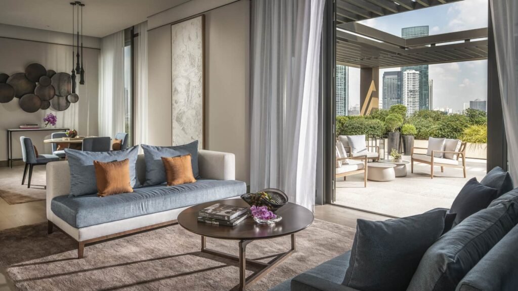 يوفّر هذا الجناح الحصري تجربة معيشة متكاملة تمزج بين المساحات الداخلية الرحبة والمساحات الخارجية على تراس السطح الكبير. استمتعوا بإطلالات مذهلة على نهر تشاو فرايا أثناء تناول الطعام أو استقبال الضيوف أو الاسترخاء على التراس الخاص. يُعد هذا الجناح الخيار المثالي للعائلات الكبيرة أو الأزواج المسافرين معًا بفضل مساحته الواسعة وتجربته الفاخرة.