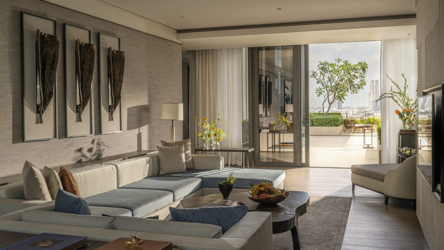 استمتعوا بمساحة رحبة وأناقة راقية في هذا الملاذ الحضري المغمور بالضوء الطبيعي، حيث يقدّم الجناح إطلالات واسعة على نهر تشاو فرايا وعلى الفناء المفتوح. يمكنكم قضاء لحظات رائعة مع العائلة أو الأصدقاء في منطقة المعيشة الواسعة، ثم الاسترخاء في خصوصية وهدوء غرف النوم.