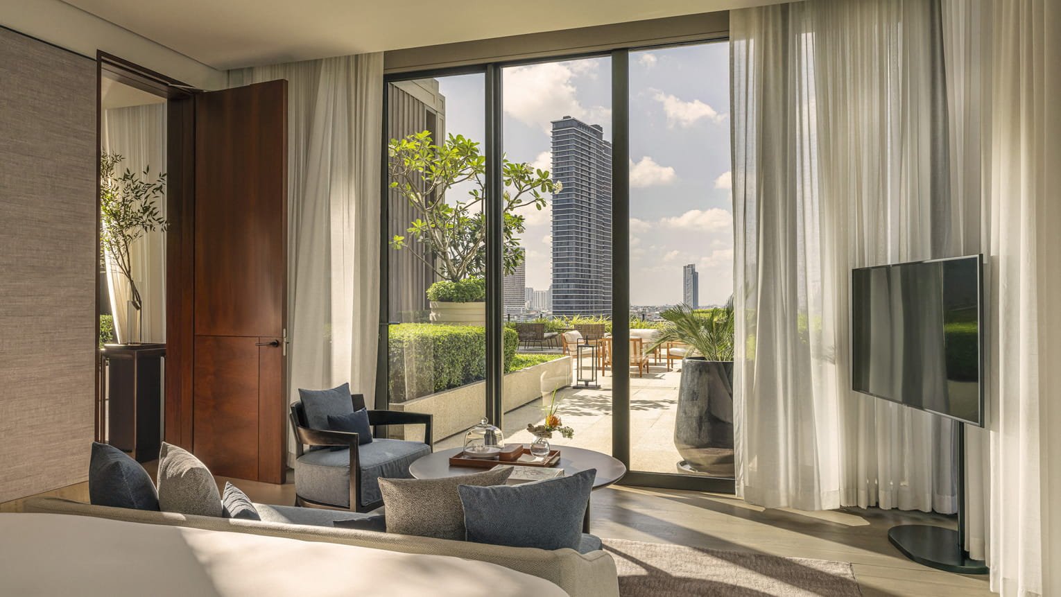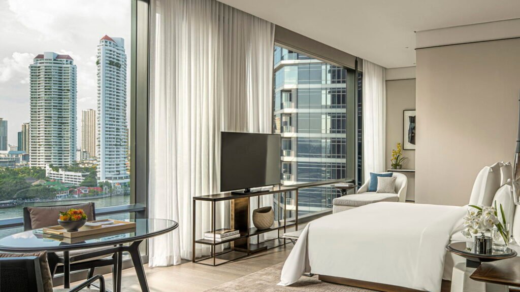 توفر هذه الأجنحة ذات غرفة النوم الواحدة أفضل ما في العالمين، مع إطلالات بانورامية على نهر تشاو فرايا وإطلالات هادئة على الفناء الداخلي. استرخِ في غرفة المعيشة الواسعة بينما تتلألأ أضواء النهر مع حلول الغسق، لتجربة إقامة تجمع بين الراحة وروعة المشهد.