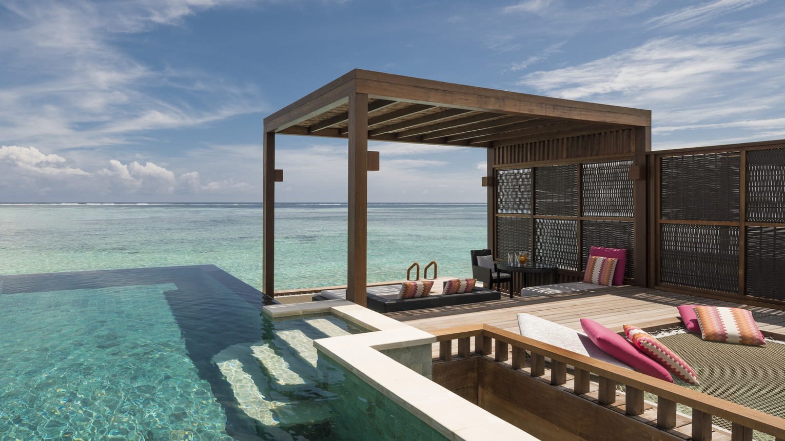 اقفز من غرفة نومك مباشرة إلى المسبح اللامتناهي. استرخِ على أراجيح فوق الماء. استمتع بألوان غروب الشمس الزرقاء عند جناح المعيشة وتناول الطعام على حافة المياه. انزل الدرج مباشرة إلى البحيرة الكريستالية الدافئة المليئة بأسماك الشعاب المرجانية والشعاب.