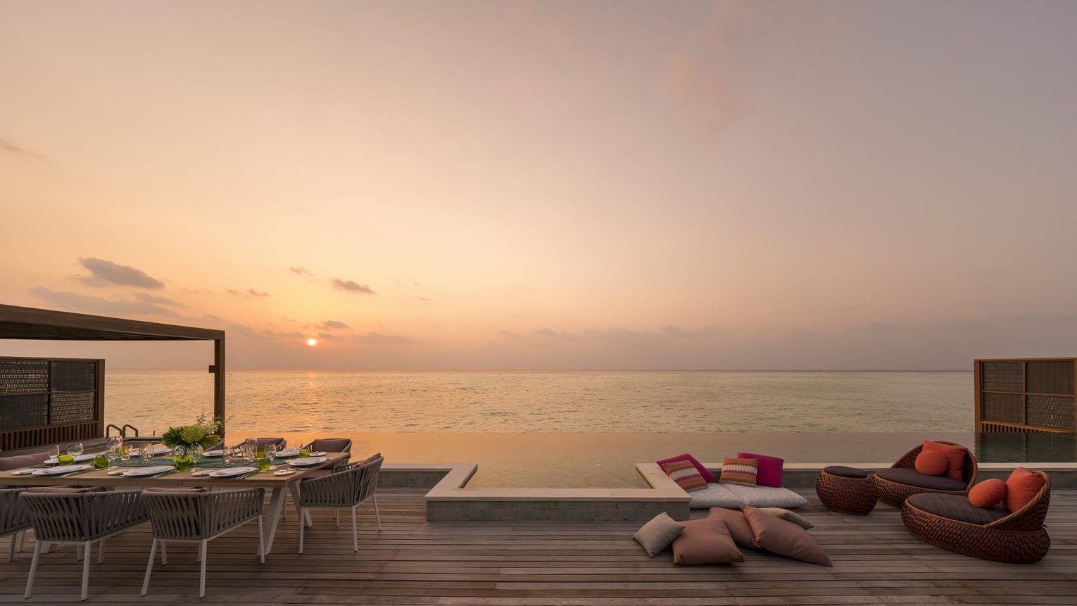 ابدأ أمسياتك في أجواء المنتجع وإطلالة ساحرة على غروب الشمس المالديفي الأسطوري. المكان المثالي لتجربة لحظات شاعرية مع بداية الليل.