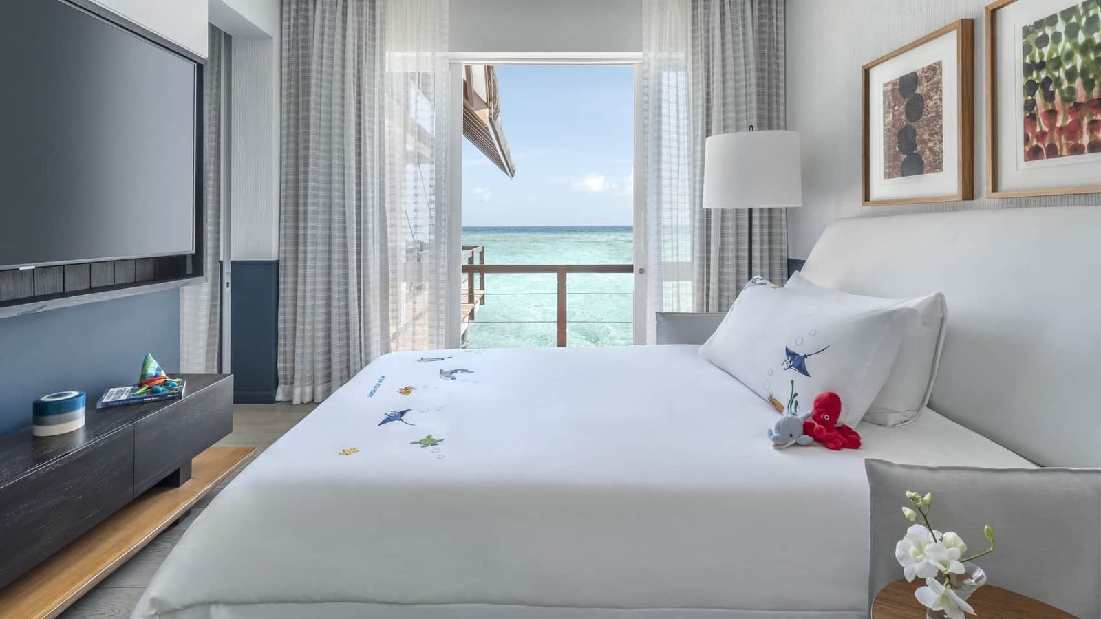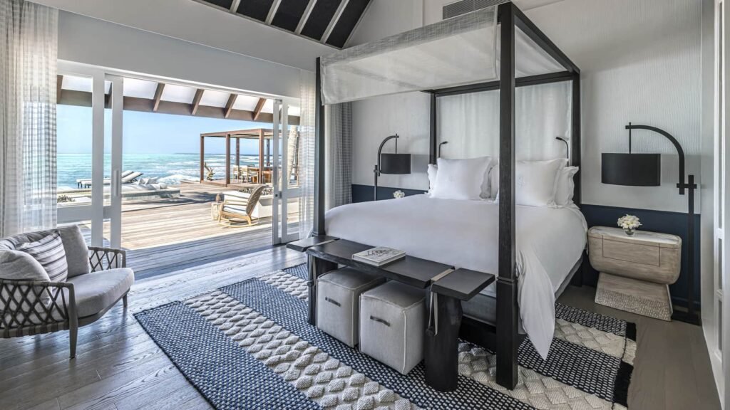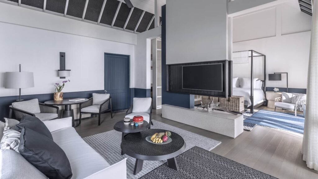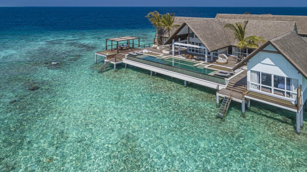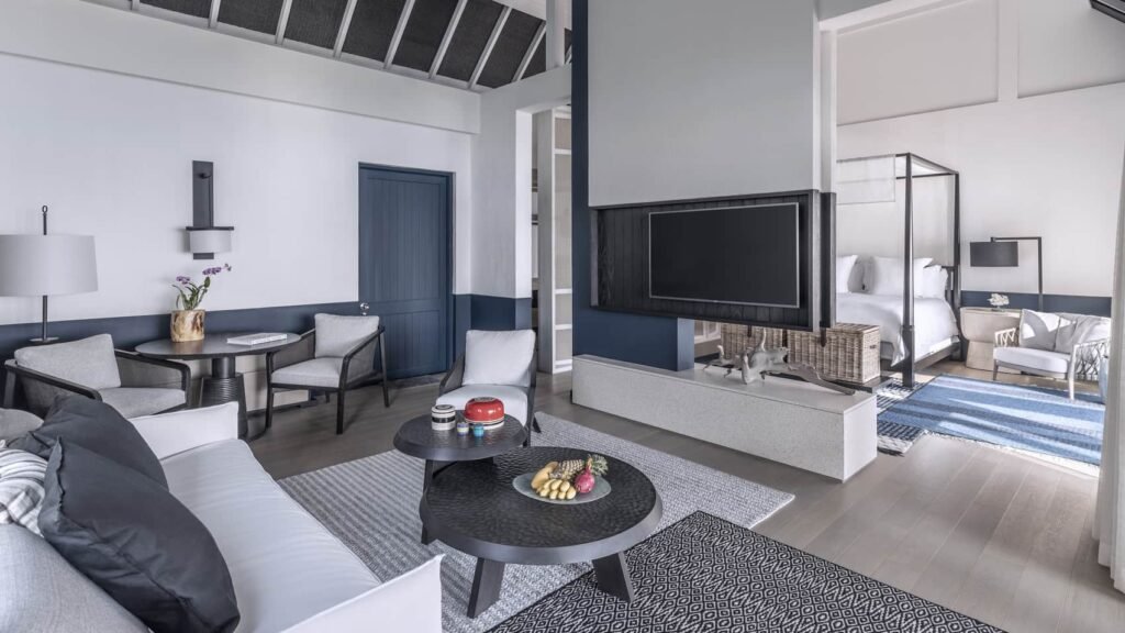 أرقى خيارات الإقامة فوق الماء، حيث يجسد هذا الجناح الفاخر تطور أسلوب العيش فوق المحيط. يضم تراسات خارجية واسعة مع غرفة معيشة غائرة وكراسي استرخاء نصف مغمورة بالماء بين أشجار النخيل، فيما تضفي غرفة الاستحمام الرئيسية ذات التصميم الدائري لمسة من الفخامة التي تتكامل مع تفاصيل داخلية استثنائية.