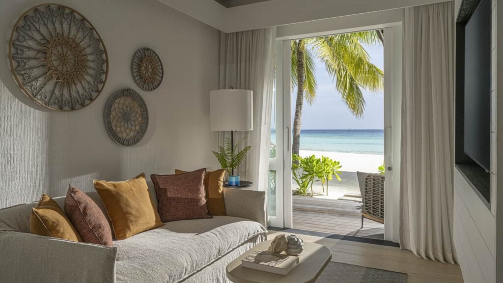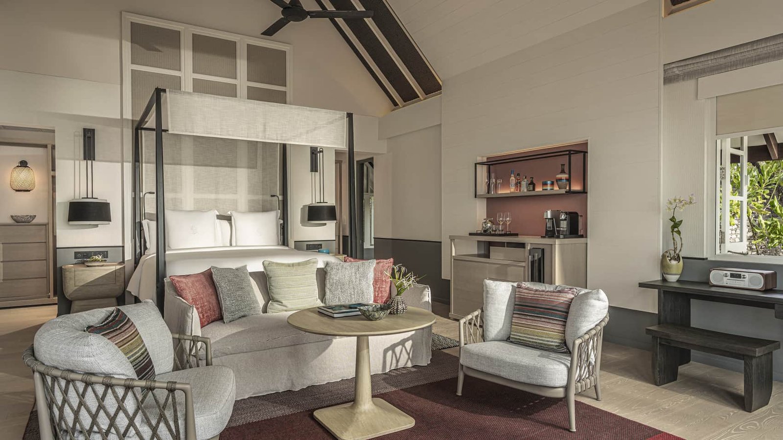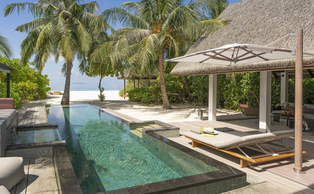 امشِ من الشاطئ وعبر بوابة تركوازية لتصل إلى فيلتك المطلة على الشاطئ، حيث يحيط بالمسبح الخاص طاولة استرخاء مبطنة، وجناح معيشة وطعام في الهواء الطلق، وغرفة نوم على طراز الجزيرة محاطة بالنباتات الاستوائية.