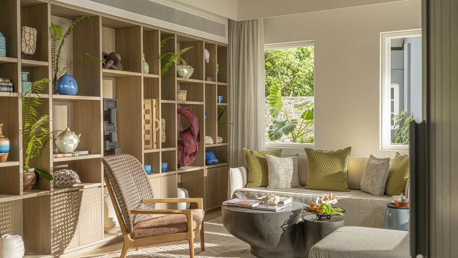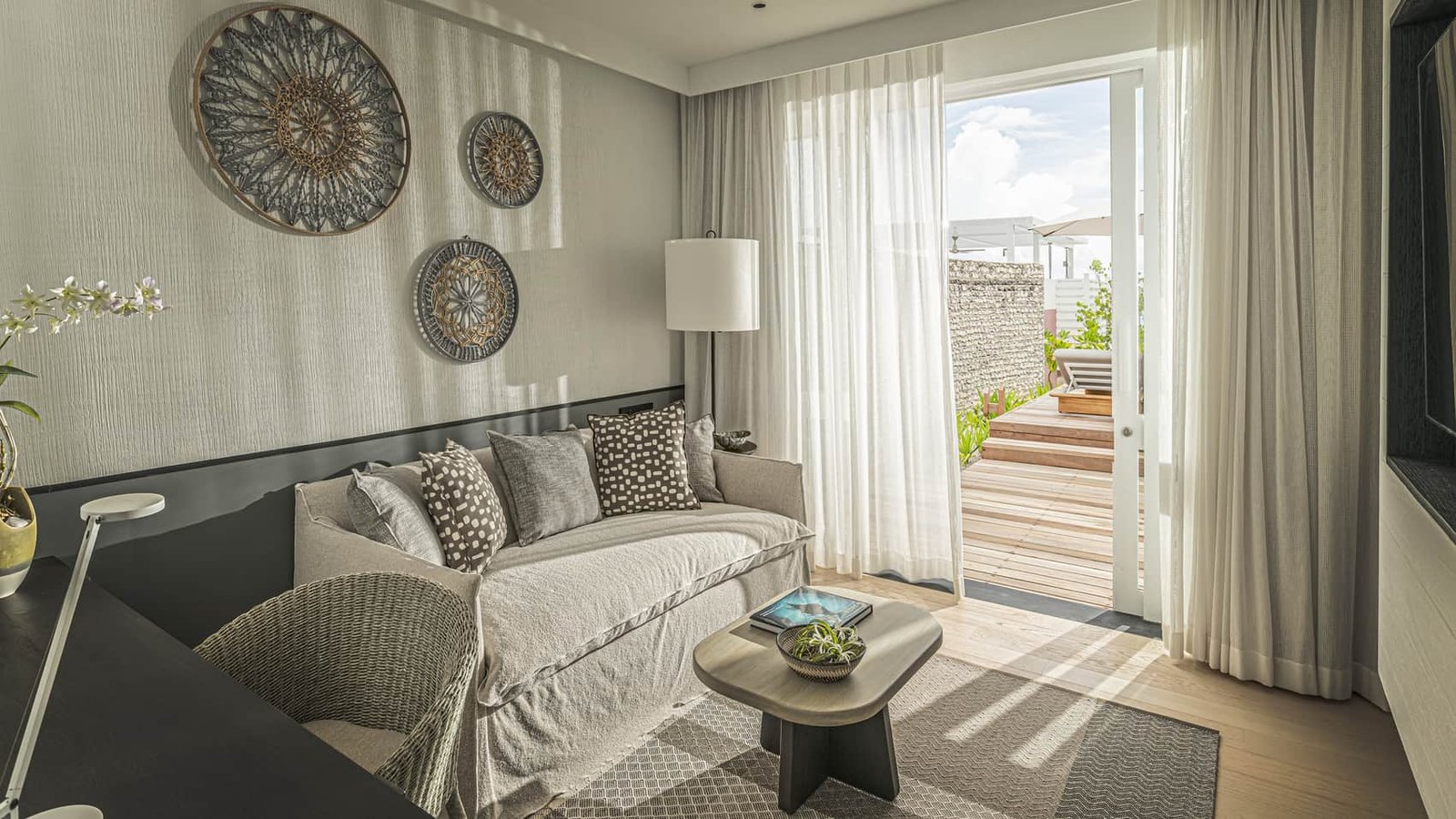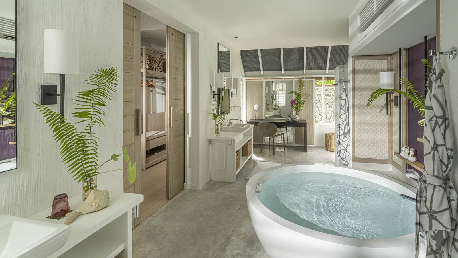 واحة فريدة تجمع بين أفضل ما في البر والبحر، مخبأة في ممر رملي تحيط به الغابات الاستوائية. يجمع هذا الجناح بين مساحات المعيشة على اليابسة وغرف النوم المبنية فوق البحيرة الشاطئية، متصلة بمسبح واسع ممتد فوق الماء تحيط به أربع شبكات استرخاء عائمة، ومنصة طعام بإطلالة على البحر، وسلالم خاصة تنزل مباشرة إلى البحيرة الكريستالية.