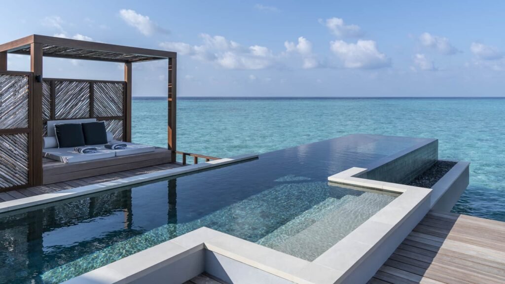 ملاذ فاخر فوق مياه المحيط، يضم مسبحاً بطول 15 متراً يربط بين التراسات المشمسة وآفاق اليونسكو الممتدة بلا نهاية. استمتع بمقاعد مواجهة للبحر في كل زاوية، مع منطقة لتناول الطعام في الظل، ردهة علوية، شبكات استرخاء فوق الماء، وأرجوحة مريحة. مكان مثالي للاسترخاء بأناقة.