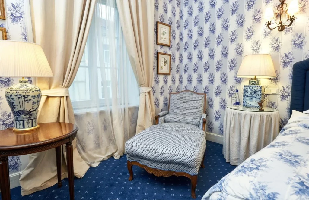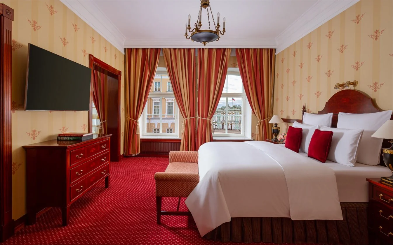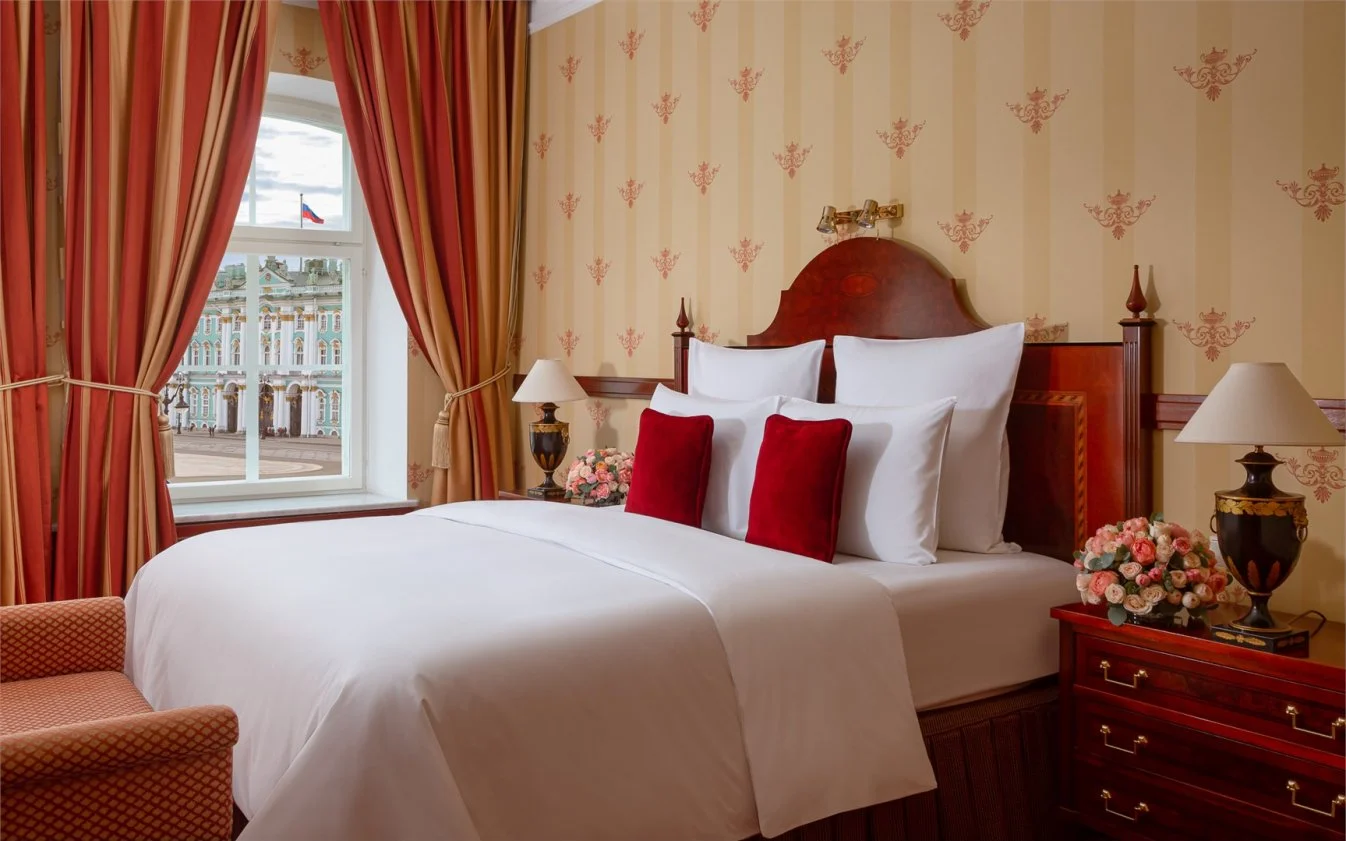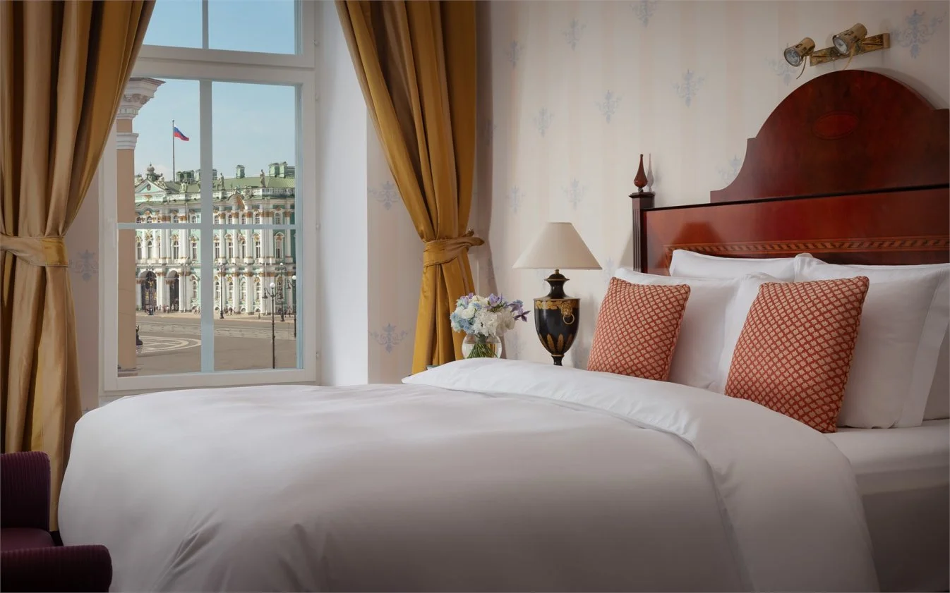 يعكس الطراز الكلاسيكي، مع التحف المختارة بعناية واللوحات الأوروبية من القرنين السابع عشر والتاسع عشر، تفرد كل جناح وتميزه. وتوفر العديد من الغرف إطلالات خلابة على ساحة القصر، ومتحف الإرميتاج، ومبنى هيئة الأركان العامة، وضفة نهر مويكا، والمركز التاريخي لمدينة سانت بطرسبرغ.