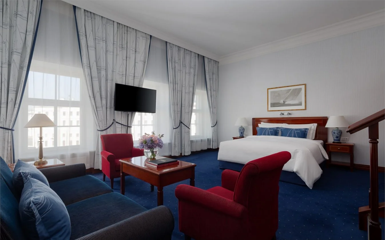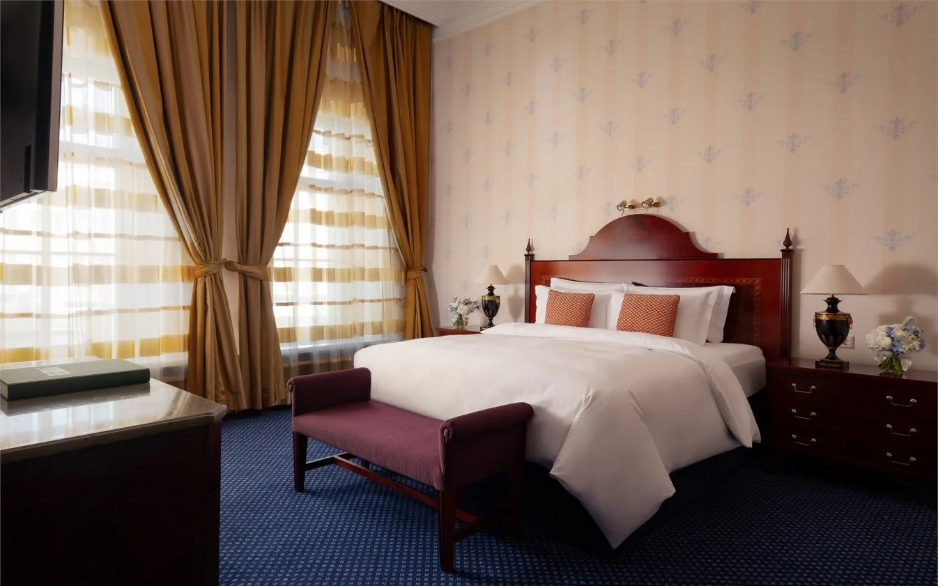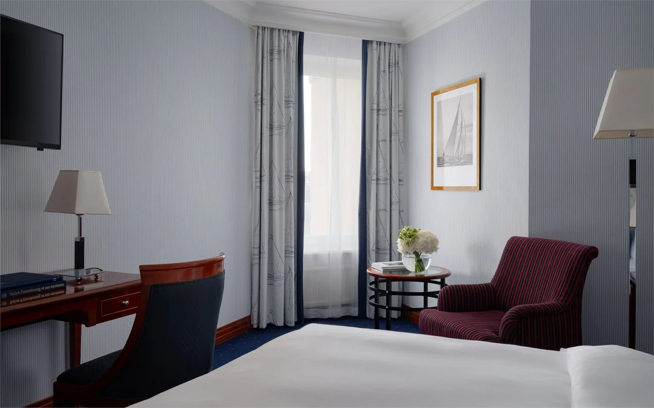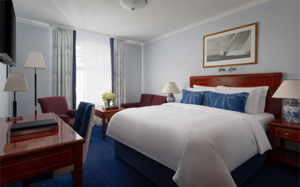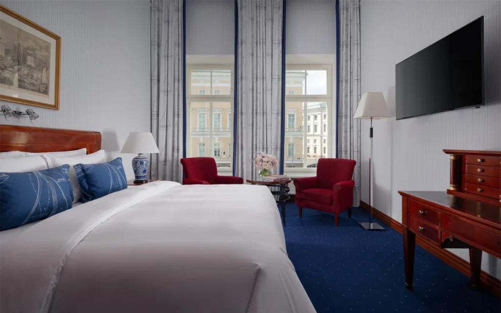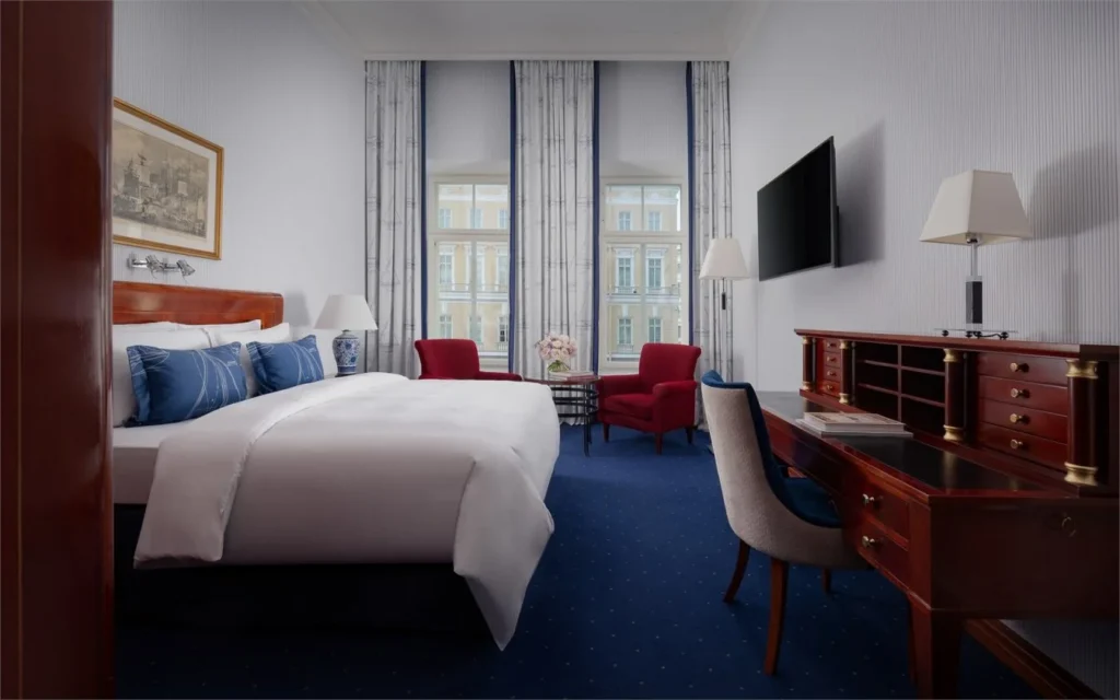 تمنح غرف فئة غراند ديلوكس أجواءً استثنائية خلال إقامتكم، بفضل مساحتها الرحبة وإطلالاتها الفريدة على المركز التاريخي لمدينة سانت بطرسبرغ أو على ضفاف نهر مويكا الساحرة.