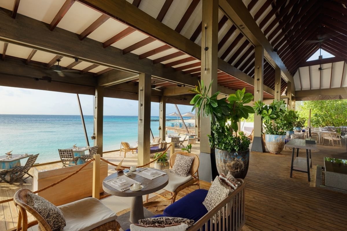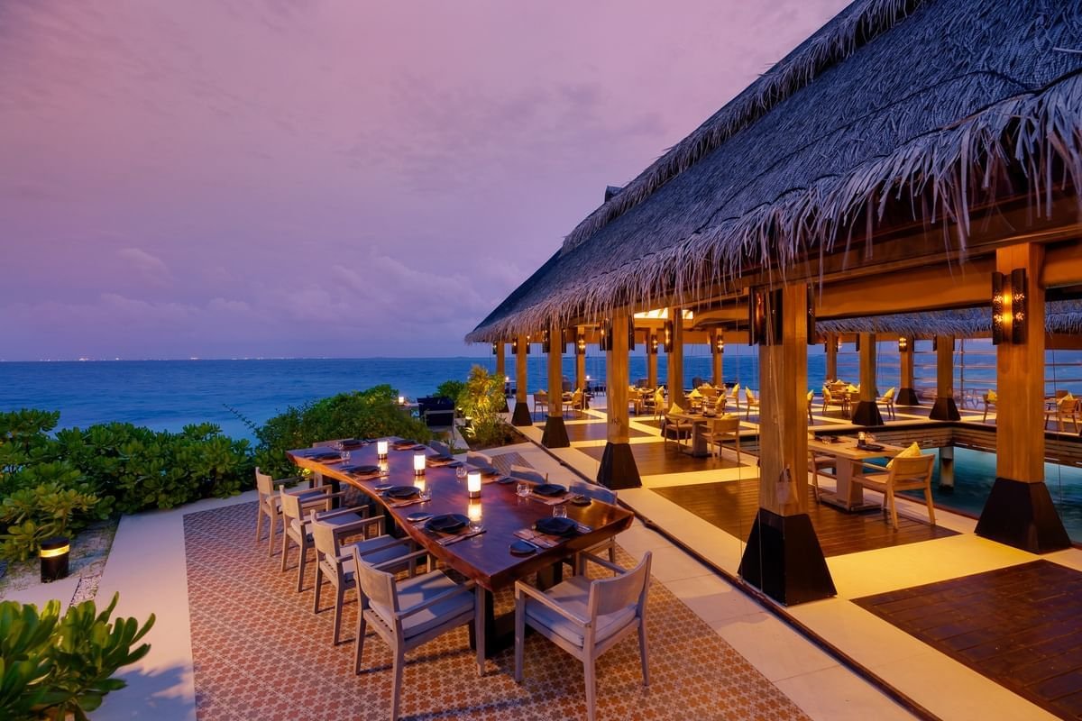 مطعم مفتوح في الهواء الطلق يُطل على المحيط، بتصميم مستوحى من الحرف المحلية مع تفاصيل خشبية من صنع حرفيين من المنطقة. يُقدم أطباقًا عالمية متنوعة مع تركيز على النكهات الآسيوية، ويتضمن محطات طهي حيّة.
