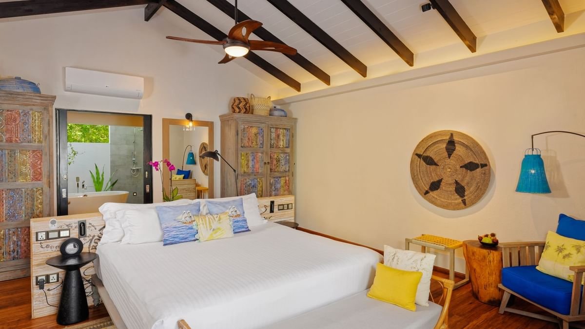 يقع المنتجع في جزيرة واحدة ويضم 120 فيلا مصممة بطابع مالديفي مع لمسة عصرية، وتُوفر إطلالات استوائية خلابة ومرافق فاخرة داخل الغرف. تشمل الفلل الشاطئية، وفلل المحيط، وفلل البحيرة، ويحتوي 65 منها على مسابح خاصة.