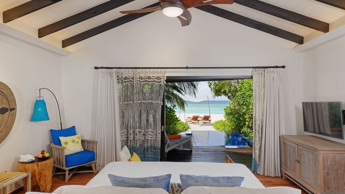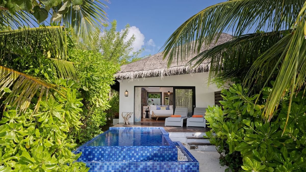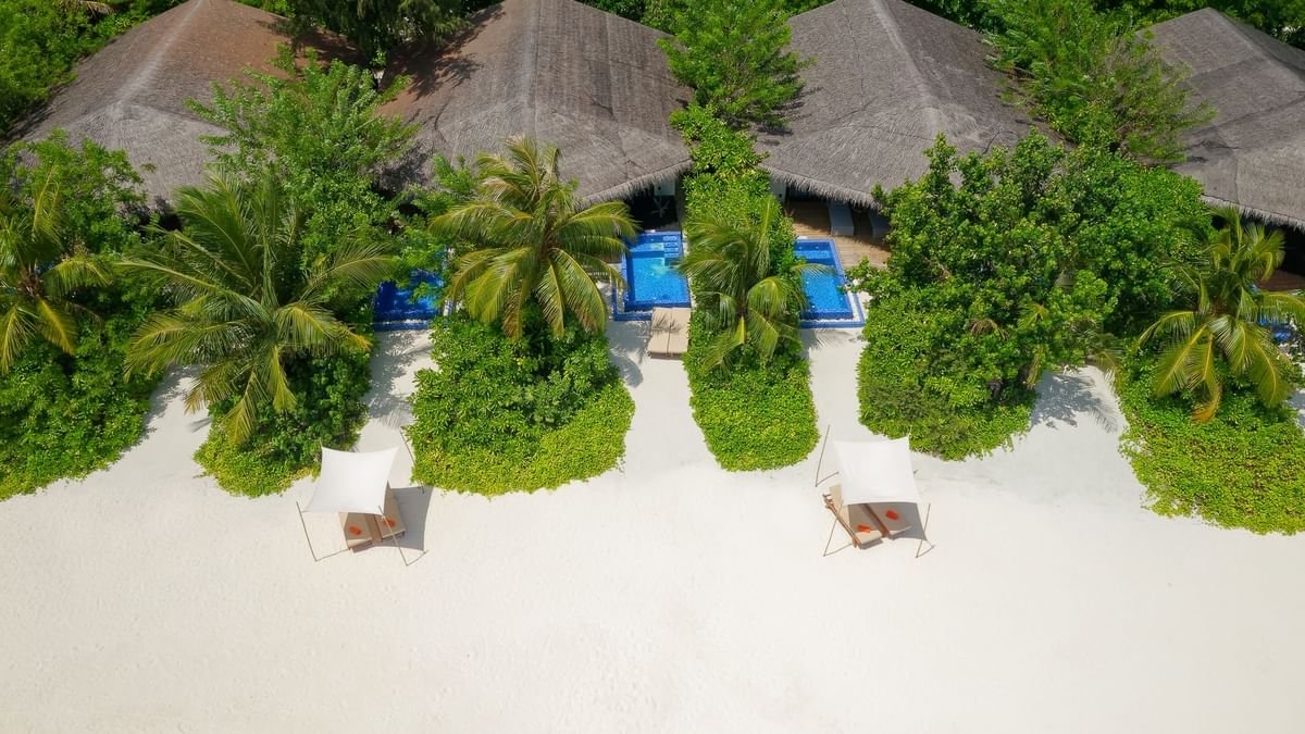 محاطة بالخضرة الكثيفة وعلى بعد خطوات من شاطئ البحر. تتميز هذه الفيلا الشاطئية في المالديف بمسبح خاص صغير يطل على المحيط، ووصول مباشر إلى الرمال البيضاء الناعمة لقضاء عطلة شاطئية مثالية.