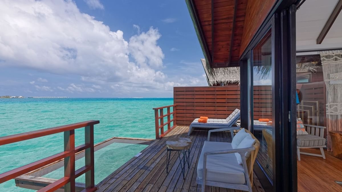 محاطة بمياه زرقاء لا نهاية لها، تعتبر فيلا Reef Pool Water Villa الملاذ الخاص بك في الجنة. استرخِ في واحدة من أفضل الفيلات المائية في المالديف، واستمتع بالوصول المباشر إلى الشعاب المرجانية والحياة البحرية المالديفية، وتمتع بمسبحك الخاص، أو استرخِ طوال اليوم على أرجوحة فوق الماء.