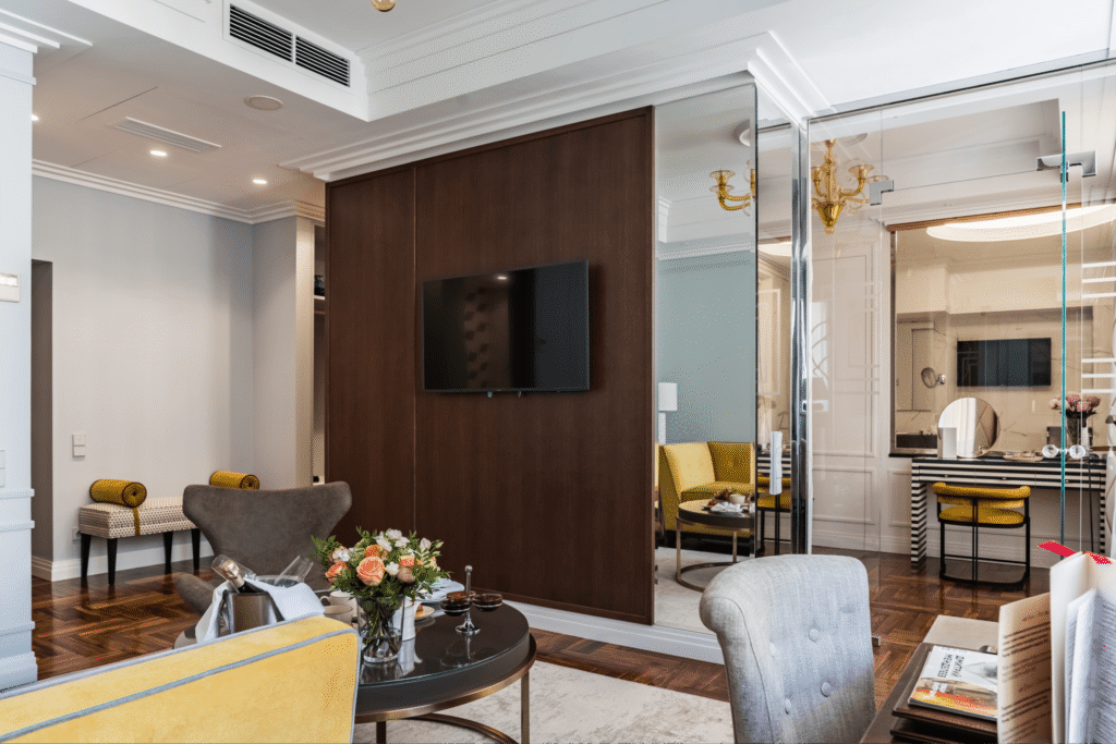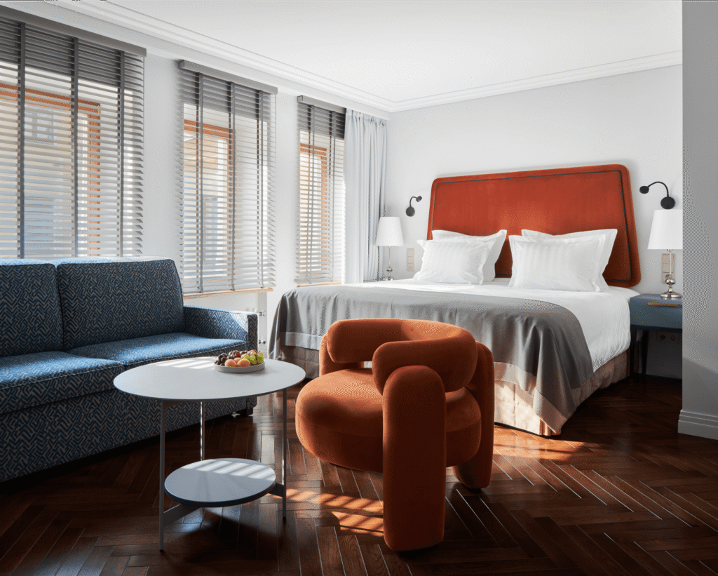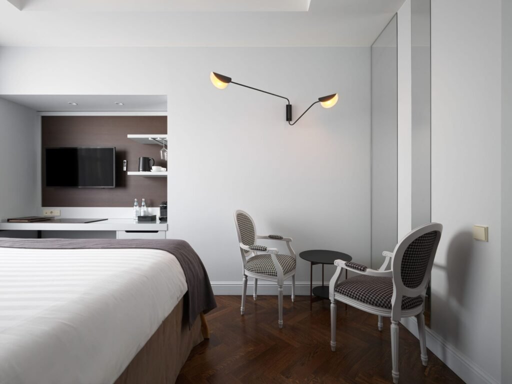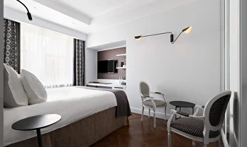 تتميز غرفة السوبيريور باتساعها وإضاءتها الطبيعية وتصميمها العصري الأنيق الذي يجمع بين الراحة والذوق الحديث. تضم الغرفة سريرًا مزدوجًا كبيرًا بحجم كينغ يوفر أقصى درجات الراحة، بالإضافة إلى منطقة عمل مزودة بمكتب مريح، ومنطقة جلوس أنيقة تحتوي على كراسي فخمة وطاولة بتصميم راقٍ، مما يجعلها خيارًا مثاليًا للإقامة المريحة سواء للعمل أو الاسترخاء.