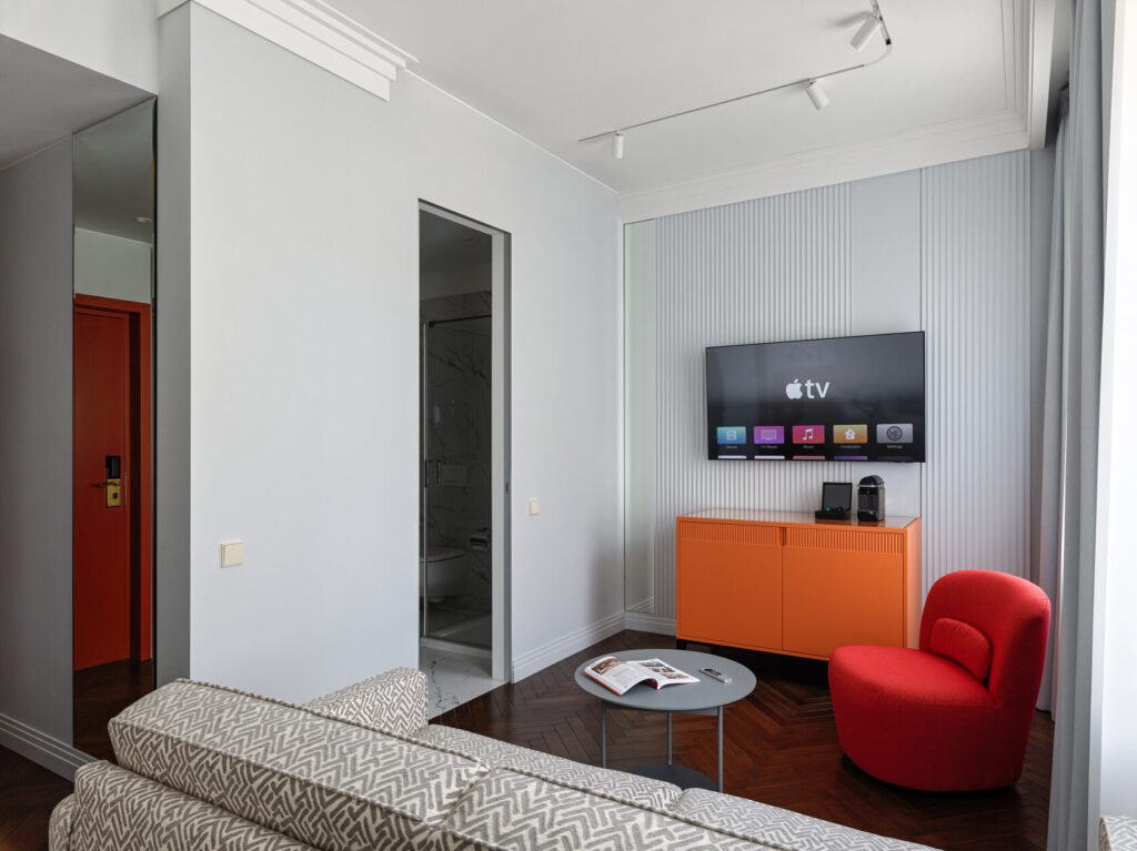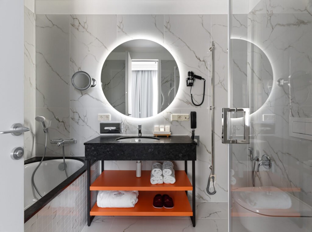 بعد يوم حافل من الاجتماعات أو جولة طويلة في شوارع سانت بطرسبورغ، ندعوك للاسترخاء في منطقة التهدئة الواقعة بجانب صالة اللياقة. تتميز المنطقة بجدار ملحي مضاء بلطف وساونا بالأشعة تحت الحمراء – وهي ابتكار عصري يقدم بديلًا صحيًا للحمام البخاري التقليدي.