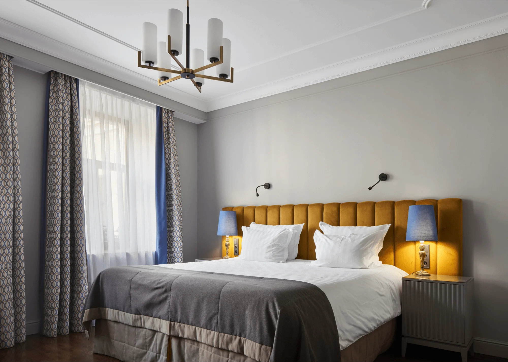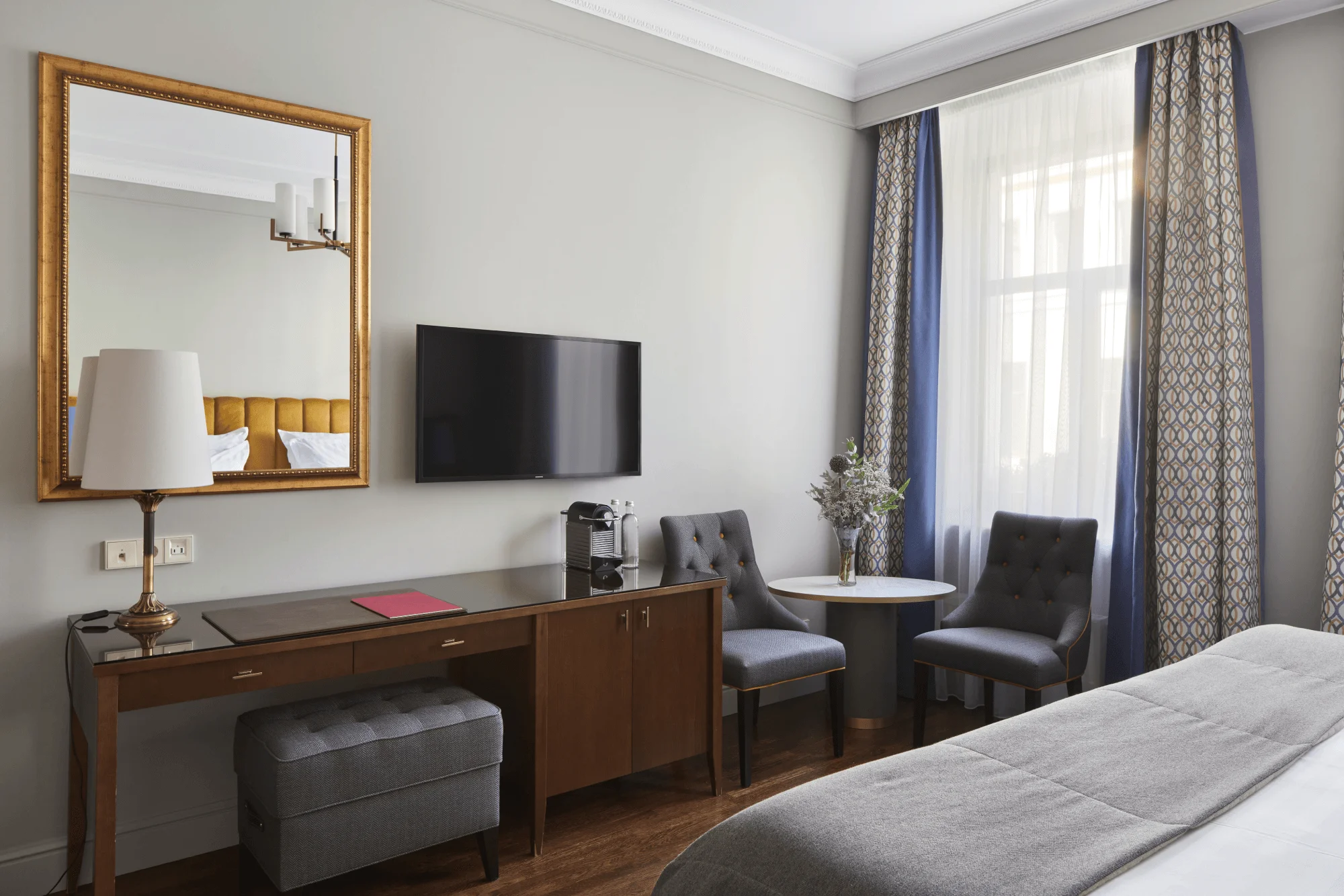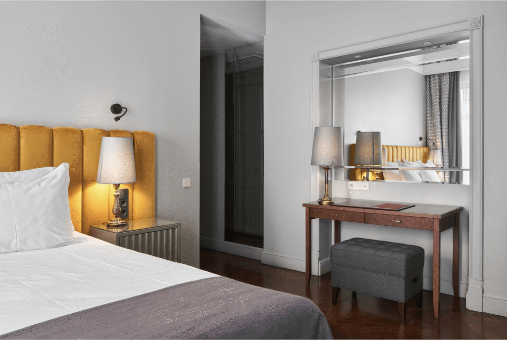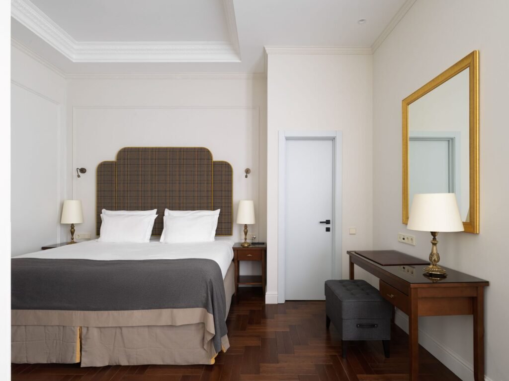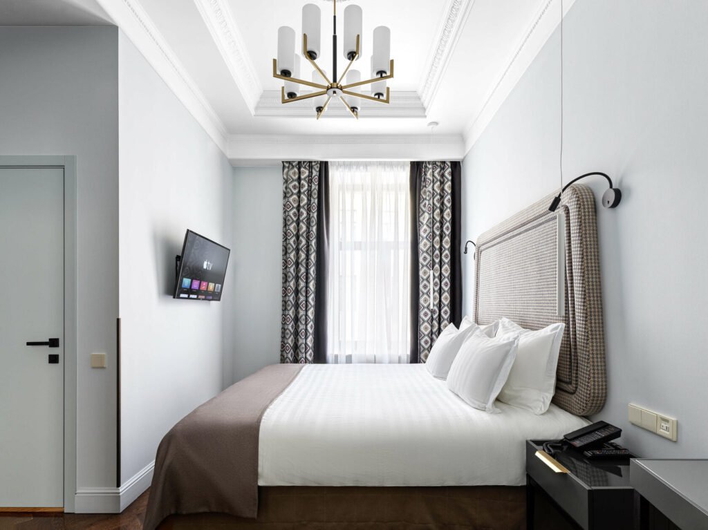 تجمع غرفة الديلوكس بين الأناقة والراحة في تصميم كلاسيكي مستوحى من تاريخ وعبق مدينة سانت بطرسبورغ ما قبل الثورة. تضم الغرفة سريرًا كبيرًا مريحًا ومنطقة عمل مناسبة توفر بيئة مثالية للاسترخاء أو إنجاز المهام.