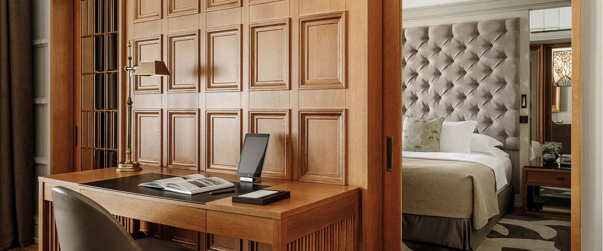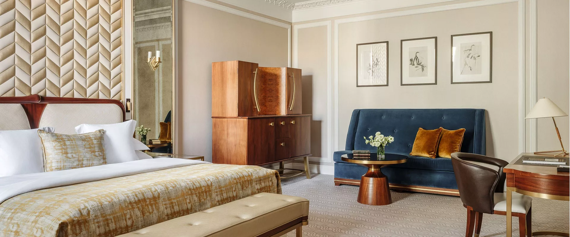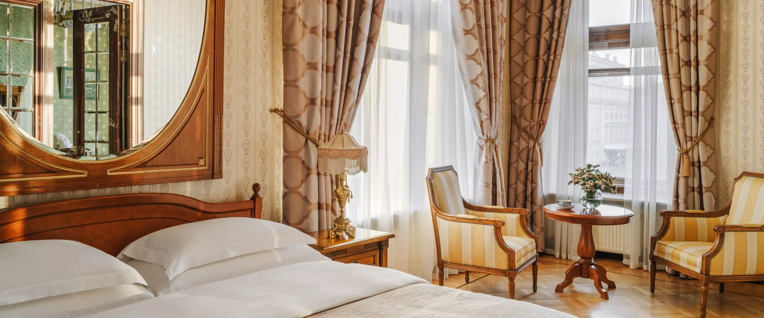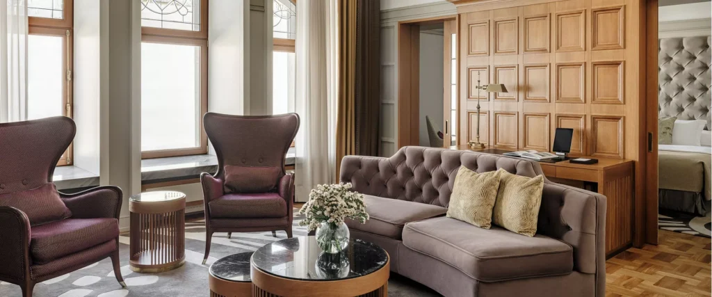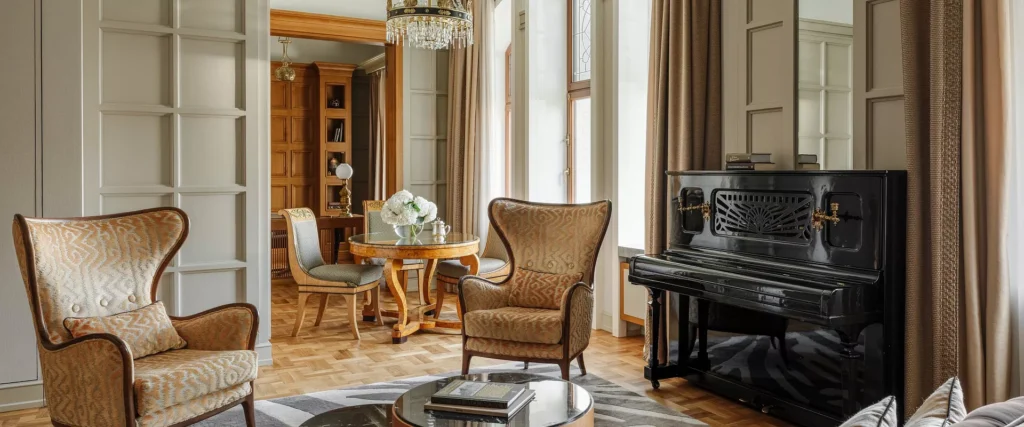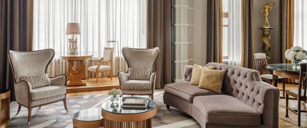 يجمع جناح Junior Suite Deluxe بين أجواء الراحة والفخامة الأرستقراطية، حيث تتناغم فيه الأثاث الكلاسيكي والأقمشة الفاخرة والعناصر الزخرفية العتيقة بانسجام تام.