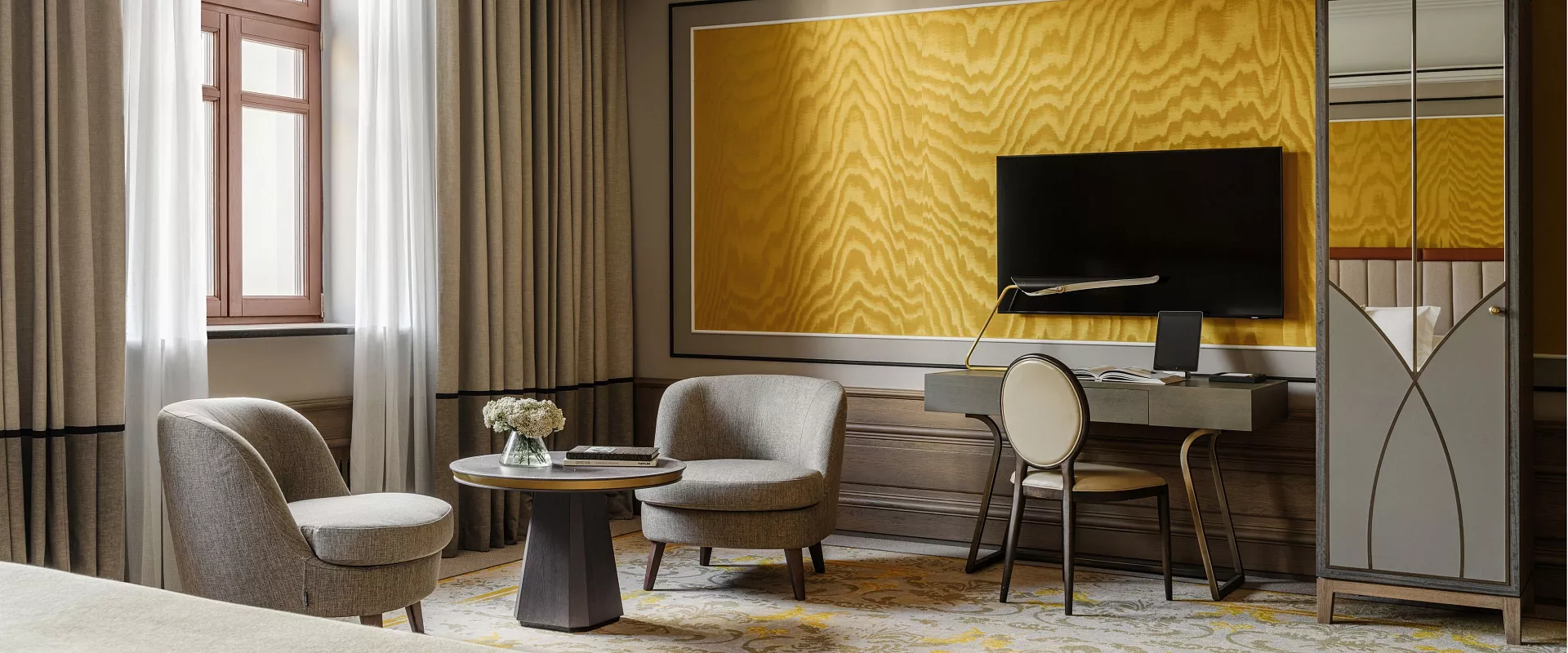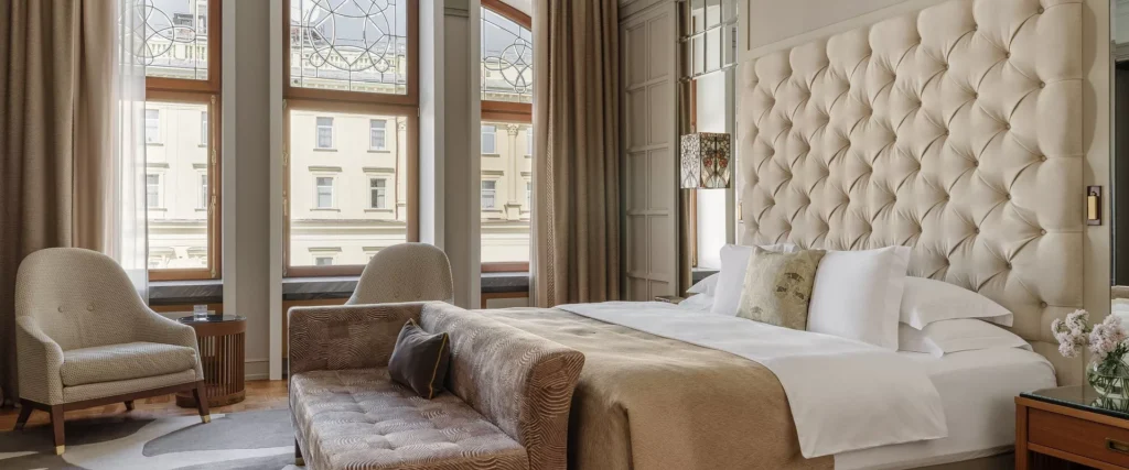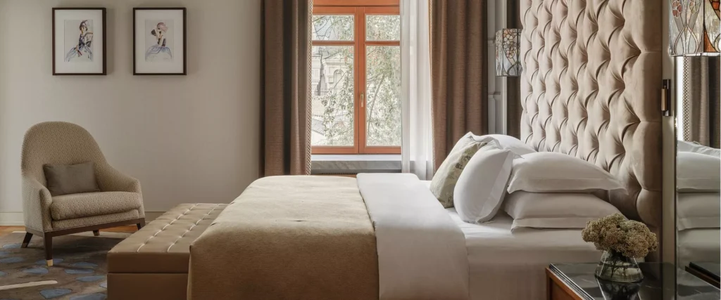 تمزج غرفة Signature Grand Superior بين الأسلوب العصري والأجواء الفاخرة لموسكو، حيث تضفي الظلال الفاتحة والمواد الفاخرة إحساسًا بالرحابة والراحة.