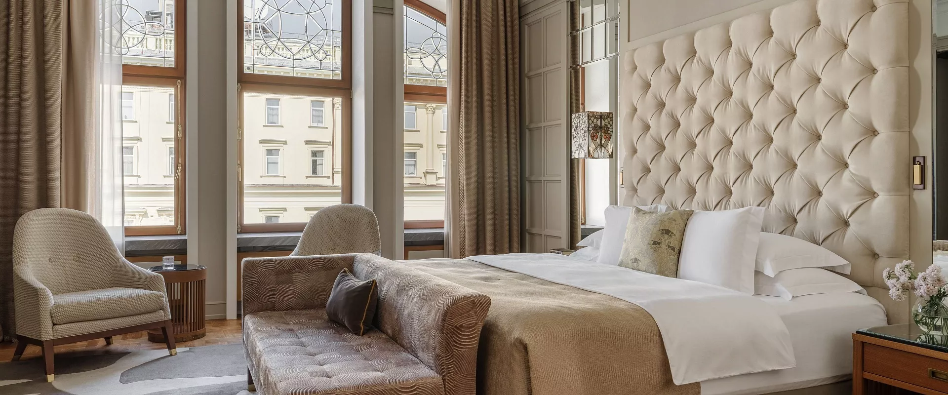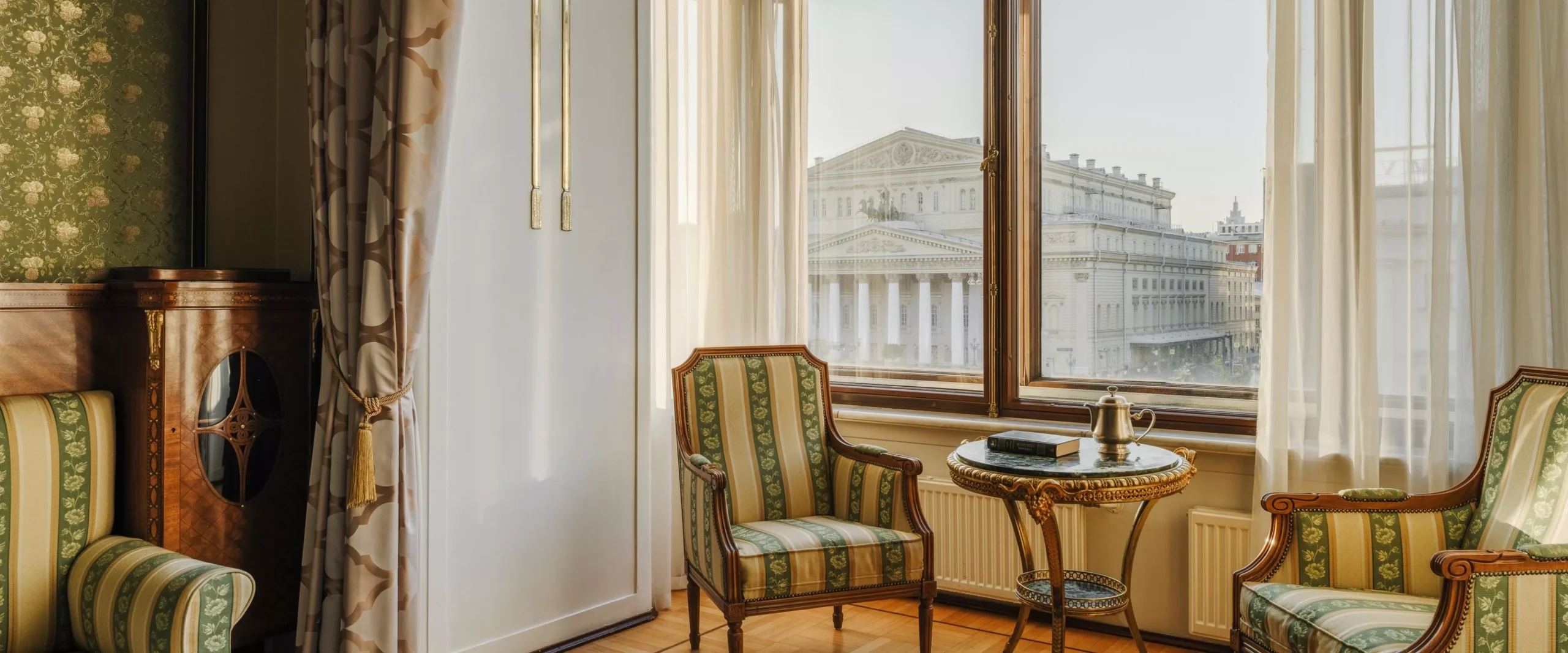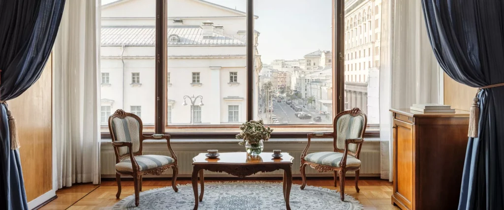 يُعد جناح هيستوريكال أكثر من مجرد غرفة فندقية، فهو رحلة تأخذك إلى زمن الأناقة الأرستقراطية في مطلع القرن العشرين. يتميز كل جناح فاخر بتصميم داخلي فريد أعيد ابتكاره بعناية فائقة، يضم كراسي أثرية وثريات كريستالية ولوحات نادرة لفنانين روس. يحتوي الجناح على غرفة نوم واسعة بسرير كينغ فاخر، وغرفة معيشة أنيقة، ومنطقة عمل مريحة تشكل معًا مساحة مثالية للاسترخاء أو لعقد الاجتماعات. وتطل النوافذ المهيبة على إطلالات آسرة لمركز موسكو التاريخي. استمتع بالمزيج المثالي بين الطراز الكلاسيكي والراحة العصرية داخل جدران فندق "ميتروبول" الأسطورية.