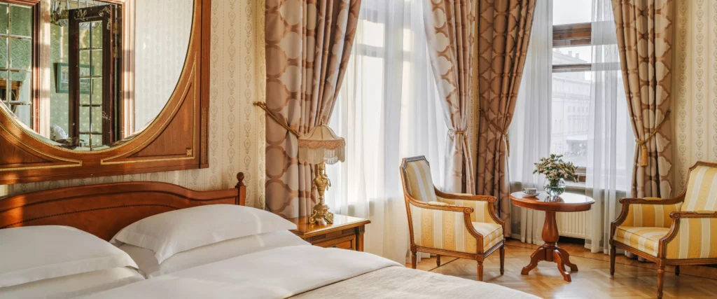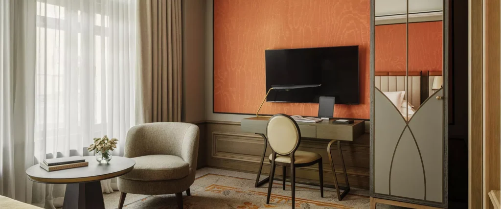تجسد غرفة سوبيريور أسلوبًا راقيًا وراحة فائقة، مما يجعلها مثالية لكل من رحلات العمل والإقامة الترفيهية في قلب العاصمة. يتبع التصميم الداخلي جماليات الفن الزخرفي الكلاسيكي (Art Deco)، مع عناصر نسيجية راقية، ألواح زخرفية، ومصابيح أنيقة.