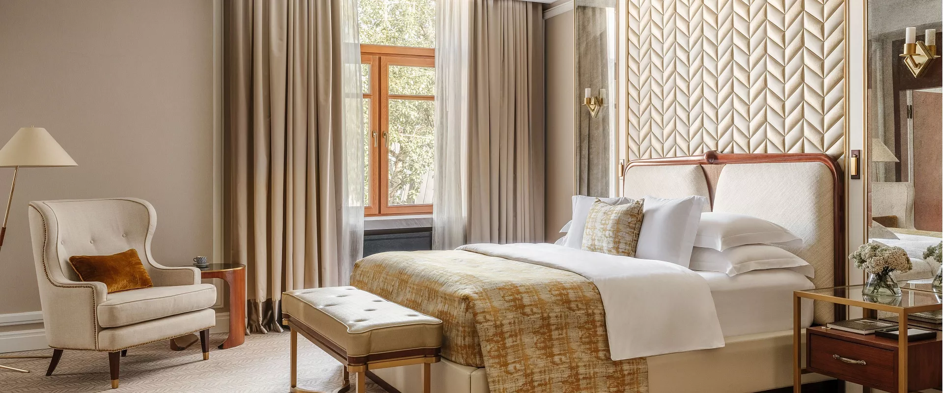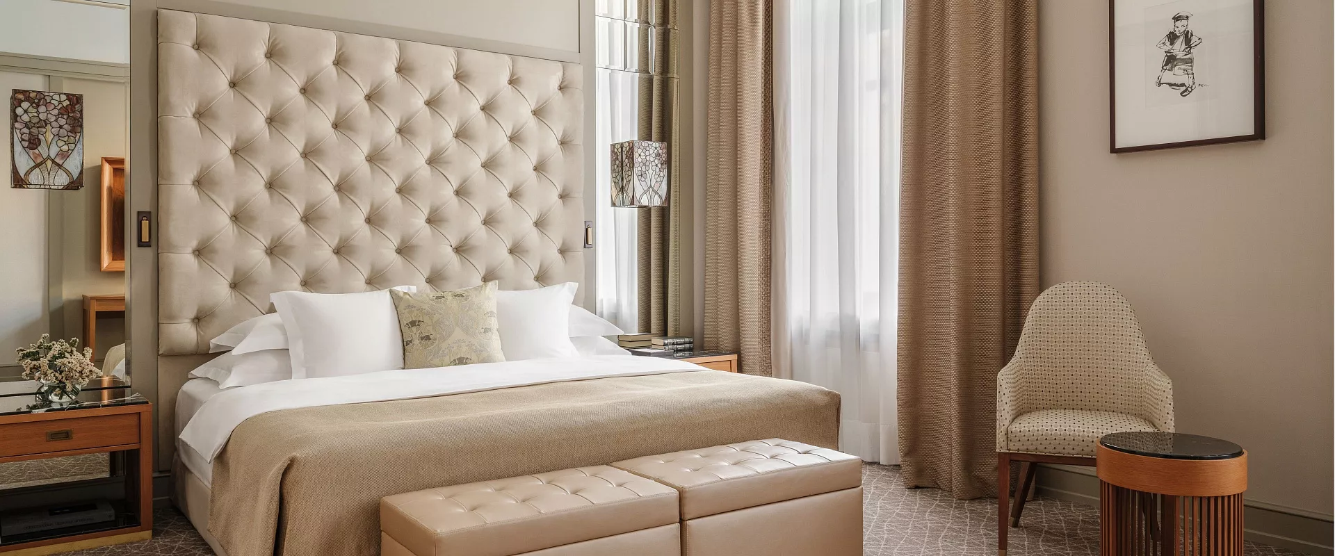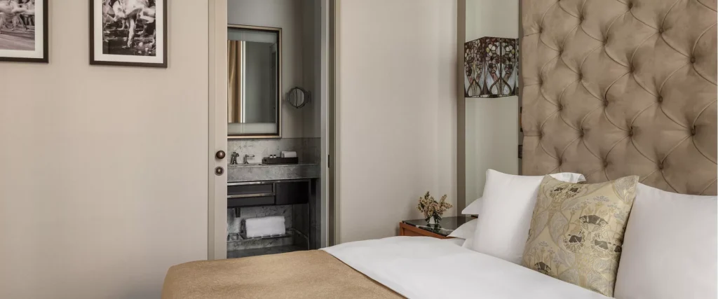انغمس في أجواء فندق "ميتروبول" الأسطوري، مع الإقامة في غرفة تجمع بين التراث التاريخي والراحة العصرية. يتميز التصميم بأسلوب آرت ديكو مع تفاصيل راقية تعيد خلق أجواء أوائل القرن العشرين، بينما تملأ النوافذ الكبيرة الغرفة بالإضاءة الطبيعية.