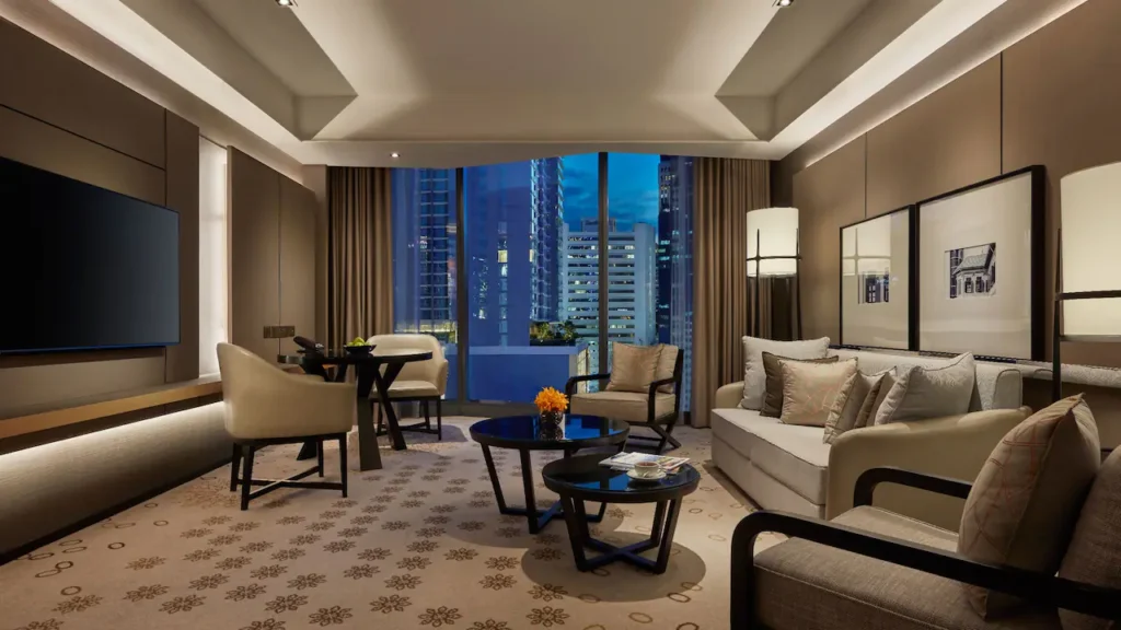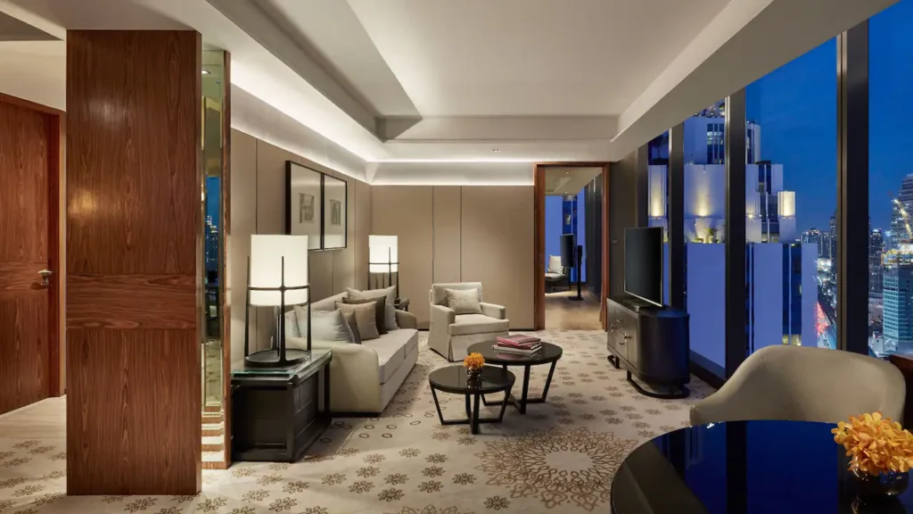استمتع بتجربة إقامة راقية في هذا الجناح الفسيح الممتد على مساحة 63–70 مترًا مربعًا، والمصمم بديكور تايلندي عصري فاخر. يضم الجناح منطقة معيشة أنيقة، وحمّامًا مجهزًا بدش غامر مستقل وحوض استحمام منفصل، بالإضافة إلى مساحة عمل واسعة تلائم احتياجات المسافرين المميزين. يوفّر الجناح إطلالات خلّابة على مدينة بانكوك، كما يشمل إمكانية الدخول إلى صالة ريجنسي كلوب للاستفادة من مستوى أعلى من الخصوصية والخدمات الحصرية.