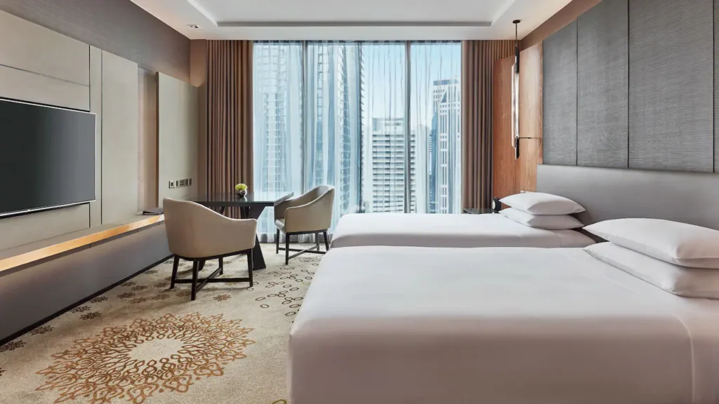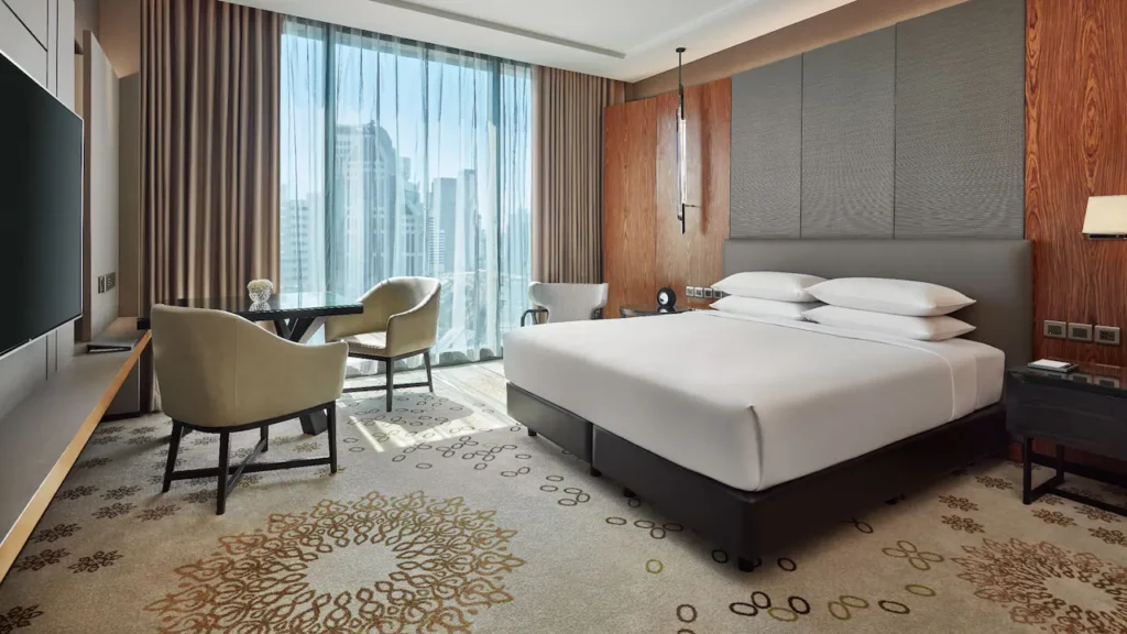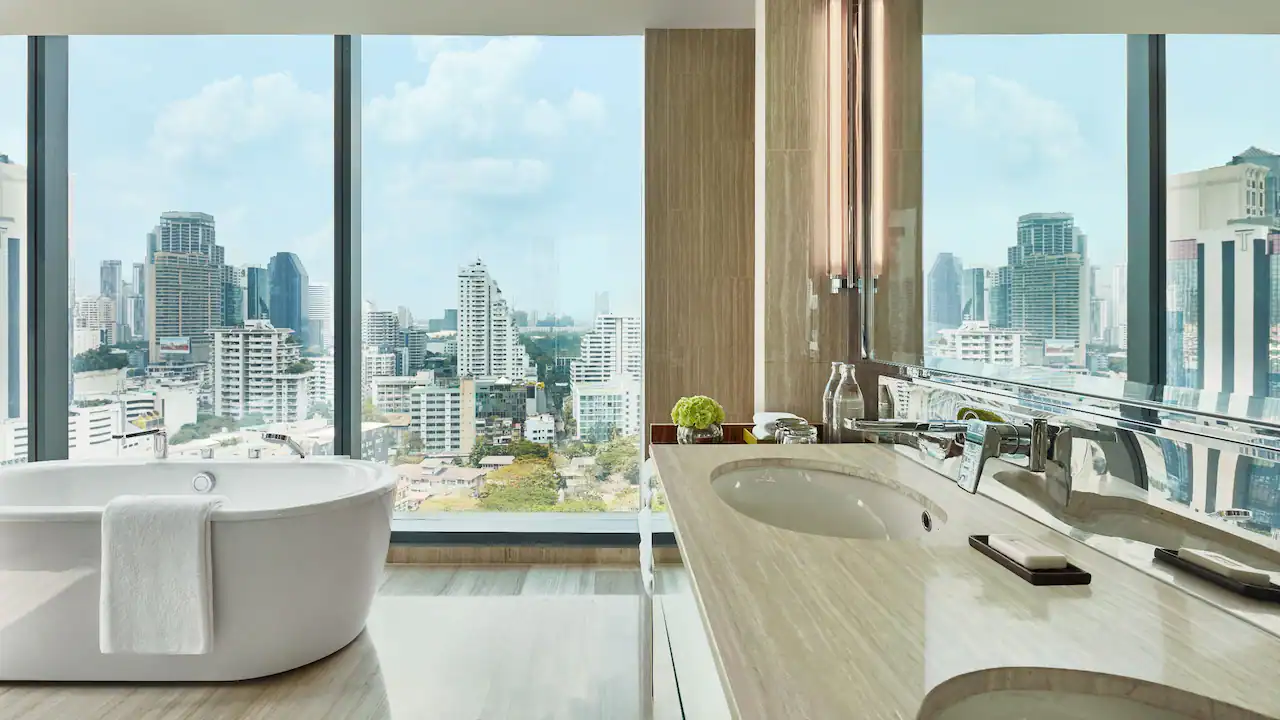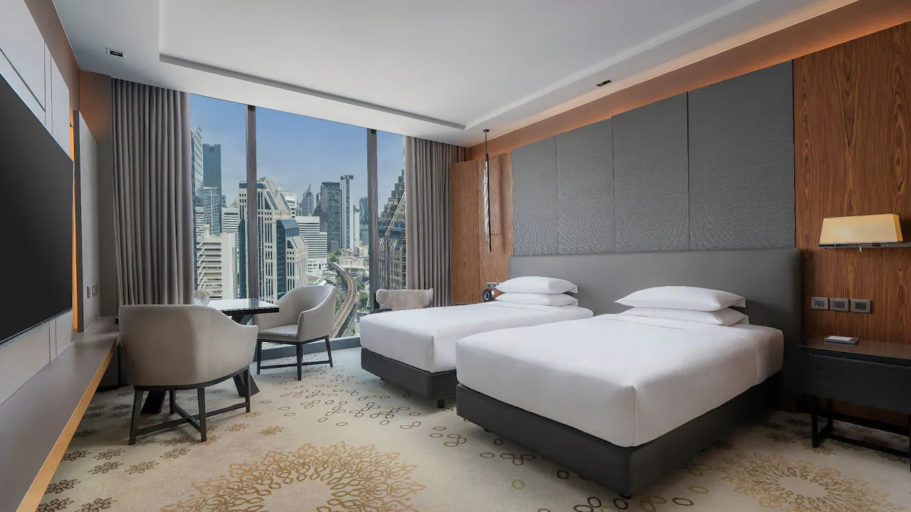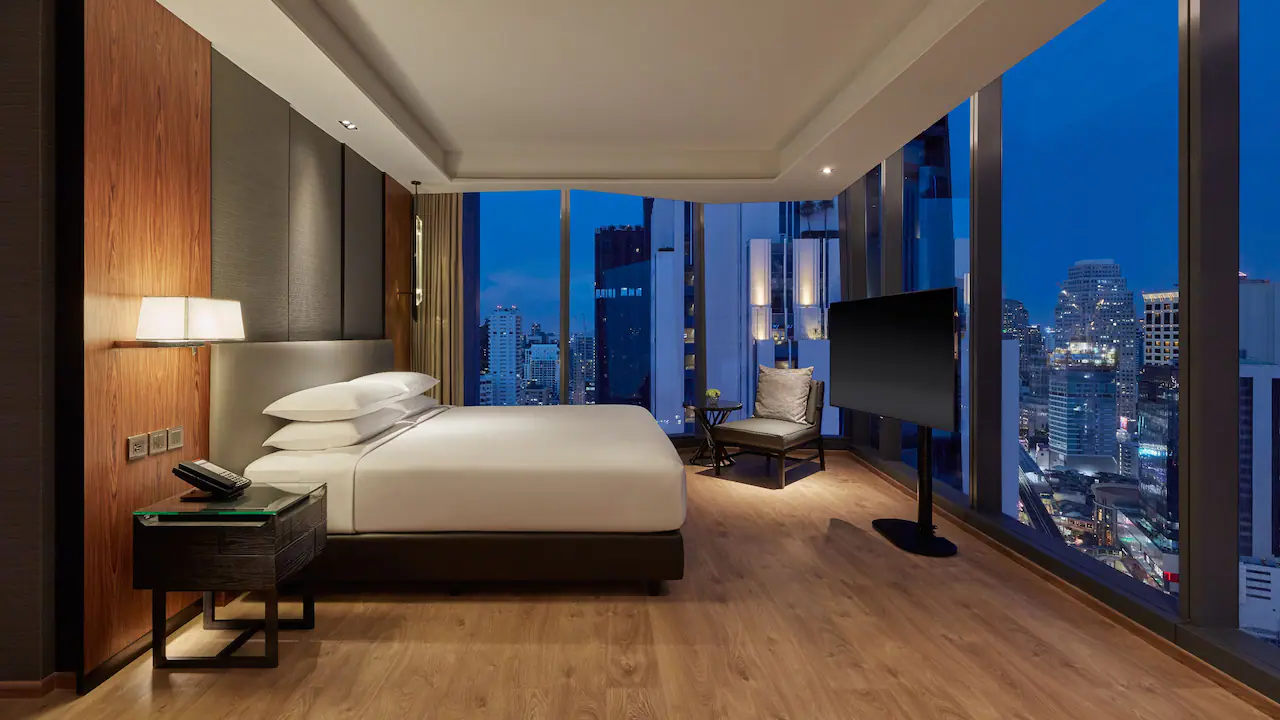 تقع هذه الغرفة الأنيقة في الطوابق من 12 فما فوق، وتوفر مساحة رحبة تتراوح بين 35 و37 مترًا مربعًا مع تصميم عصري ولمسات راقية. تضم الغرفة حمّامًا مجهزًا بدش غامر مستقل وحوض استحمام منفصل، إضافة إلى مساحة عمل مريحة تلبّي احتياجات المسافرين من رجال الأعمال والباحثين عن الراحة. استمتع بإطلالات خلّابة على مدينة بانكوك من خلال نوافذ ممتدة من الأرض إلى السقف تكشف مشاهد بانورامية للسماء المتلألئة وأضواء المدينة النابضة بالحياة. تتوفر هذه الفئة بخيار سرير كينج أو سريرين منفصلين حسب تفضيل الضيف.