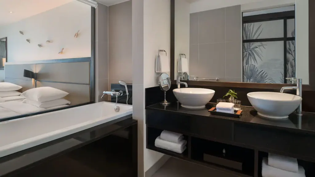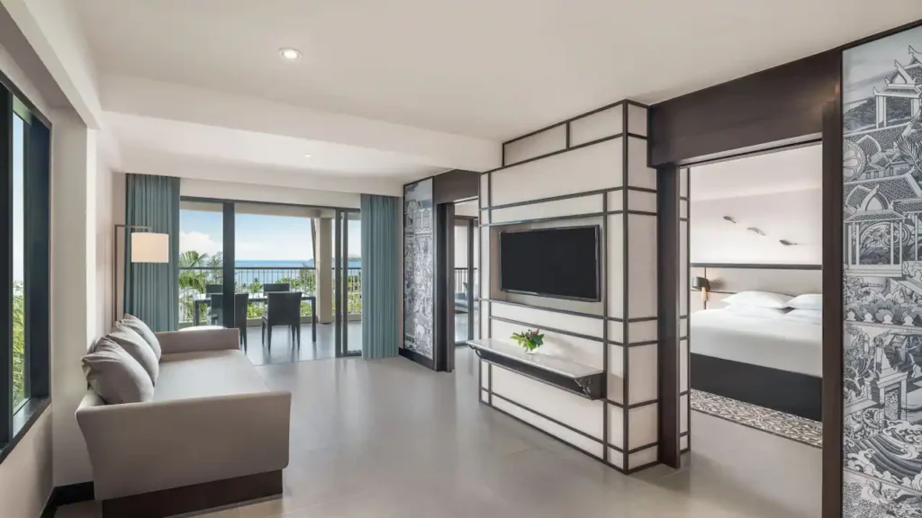 استمتعوا بإقامة مترفة في هذا الجناح الواسع بمساحة 101 مترًا مربعًا، والذي يضم غرفة نوم رئيسية بسرير كينج وغرفة ثانية بسريرين منفصلين، بالإضافة إلى حمّام واحد مجهّز لراحة الضيوف. يتميز الجناح بوجود منطقة معيشة مستقلة وشرفة كبيرة مجهّزة بـ سرير استرخاء (Daybed) وطاولة طعام، مع إطلالات خلّابة على بحر أندامان.