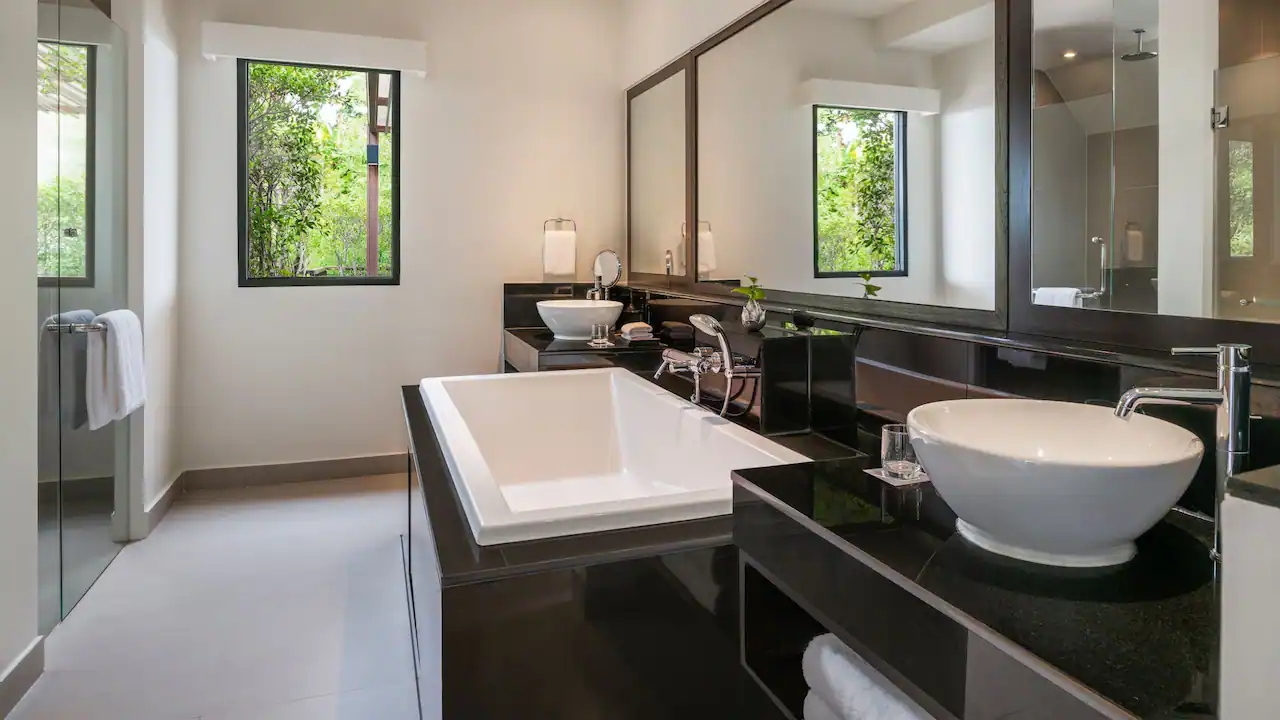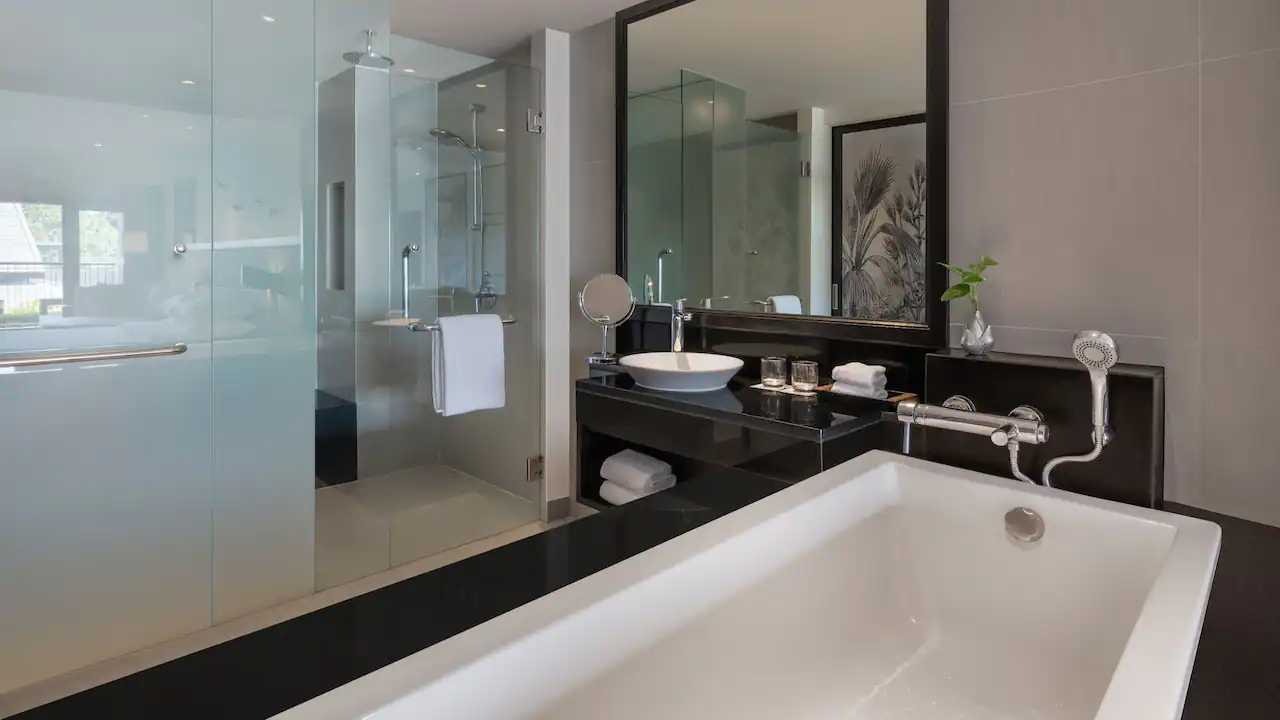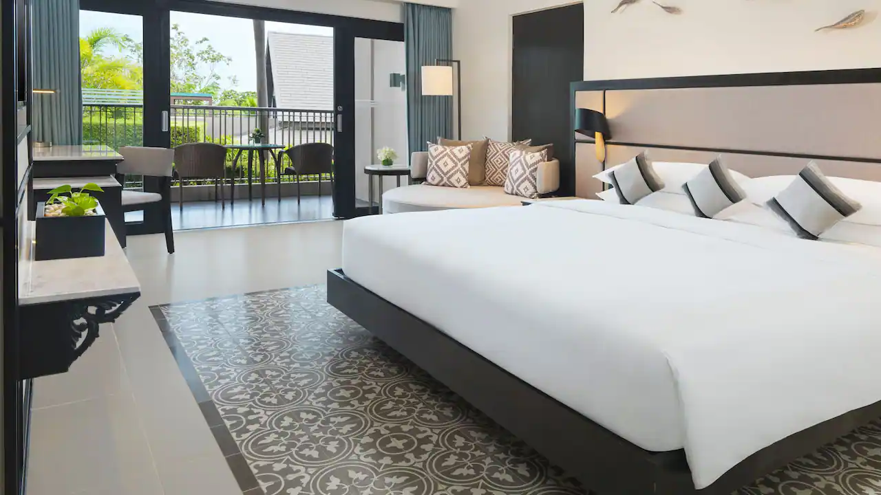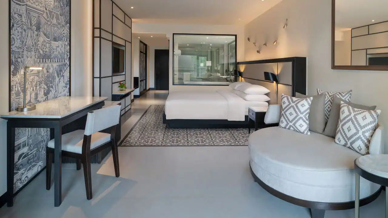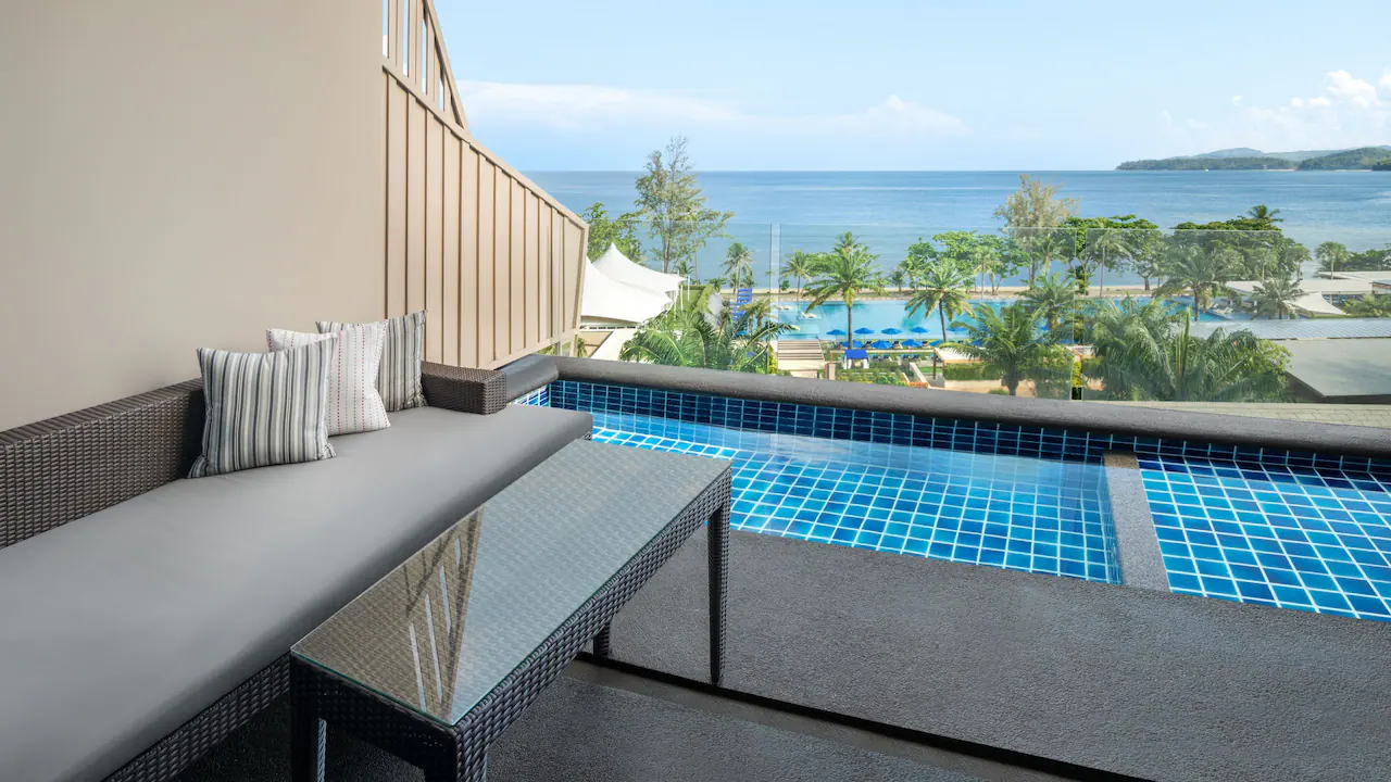 استرخِ في هذه الغرفة الأنيقة البالغة مساحتها 44 مترًا مربعًا والمزوّدة بسرير كينج، مع تراس فسيح بمساحة 65 مترًا مربعًا يضم مقعدَي استرخاء تحت أشعة الشمس، ومنطقة جلوس مظلّلة في الهواء الطلق، إضافة إلى حوض جاكوزي خاص يطل على بحر أندامان لإقامة مفعمة بالرفاهية والهدوء.