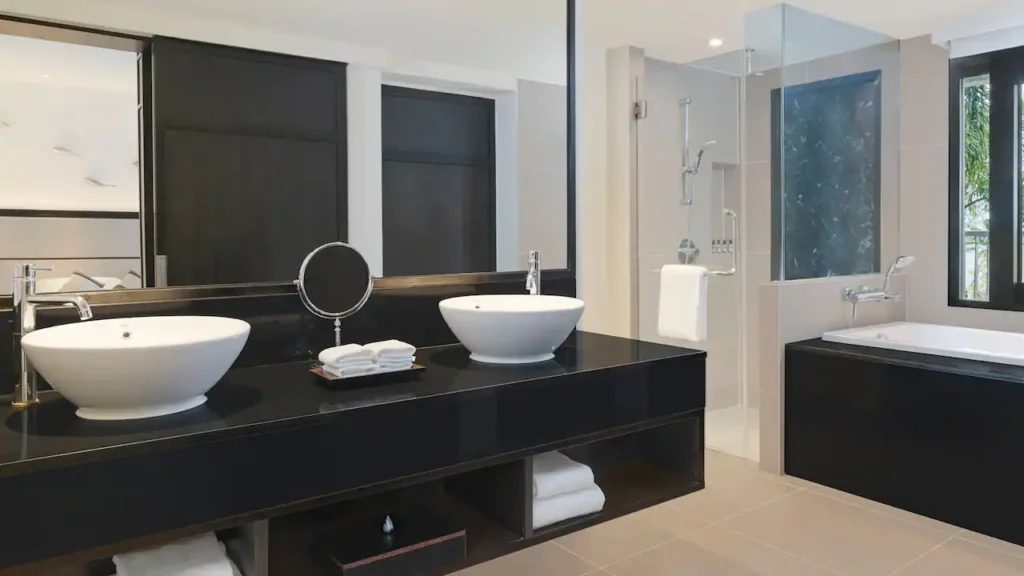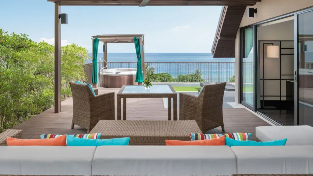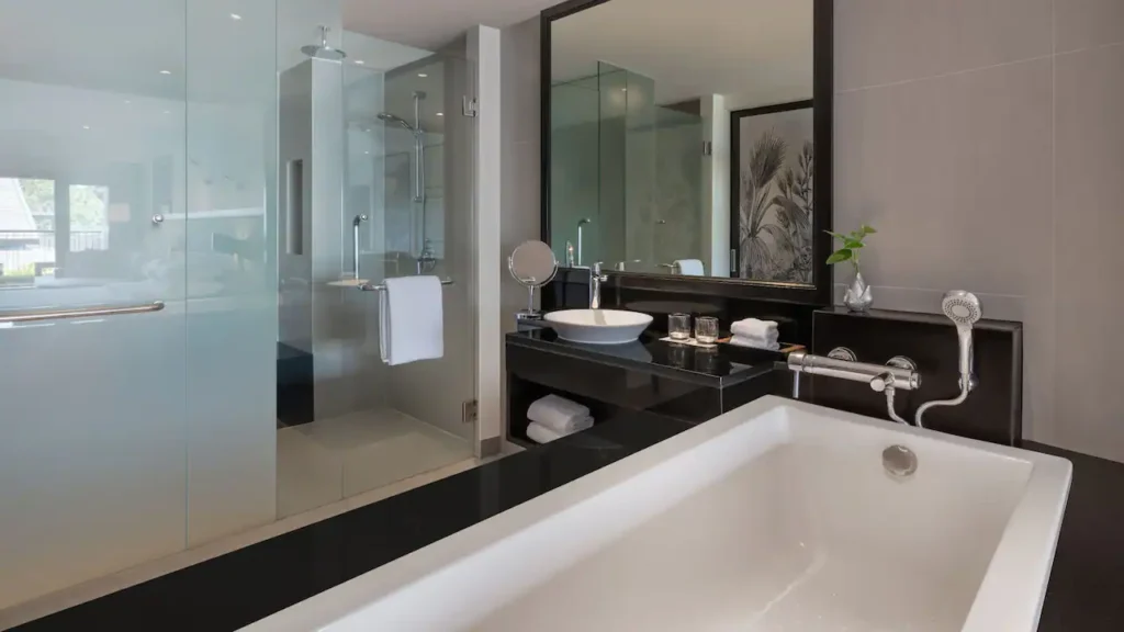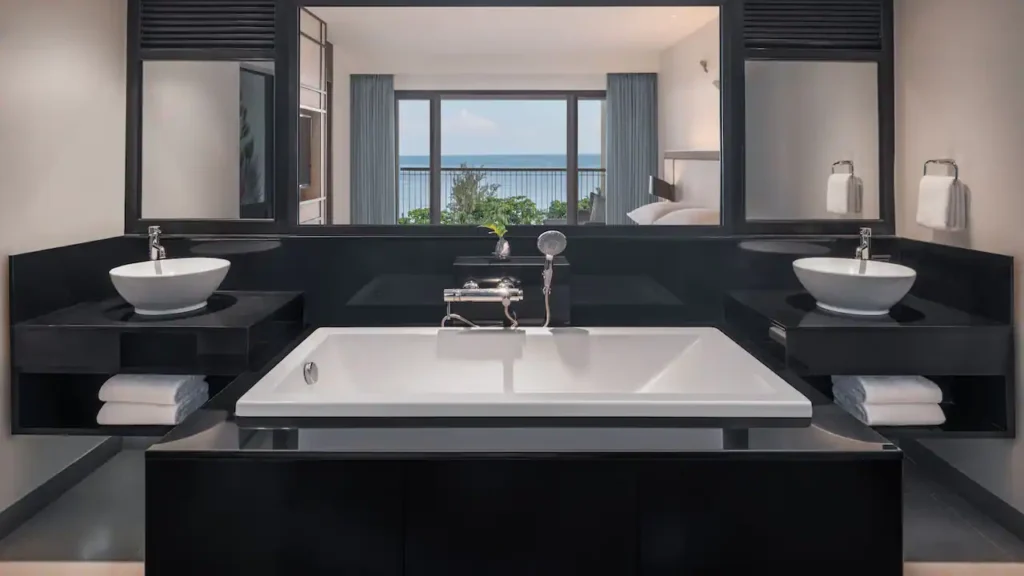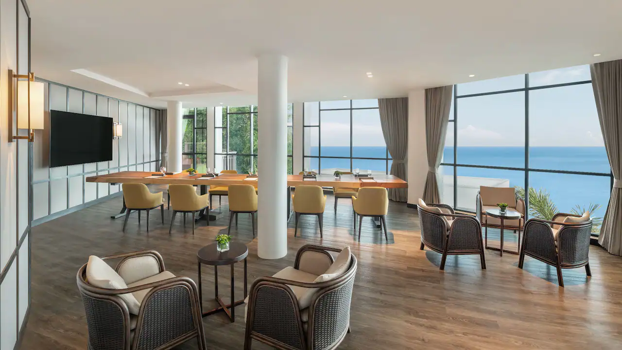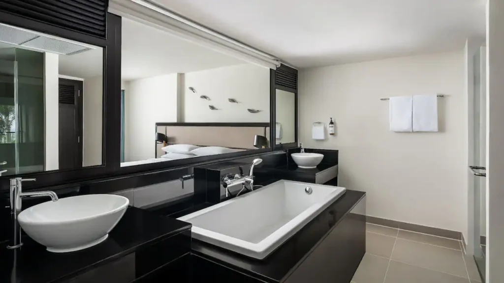 استرخِ في هذه الغرفة الأنيقة البالغة مساحتها 44 مترًا مربعًا والمزوّدة بسرير كينج، مع تراس فسيح بمساحة 65 مترًا مربعًا يضم مقعدَي استرخاء تحت أشعة الشمس، ومنطقة جلوس مظلّلة في الهواء الطلق، إضافة إلى حوض جاكوزي خاص يطل على بحر أندامان لإقامة مفعمة بالرفاهية والهدوء.