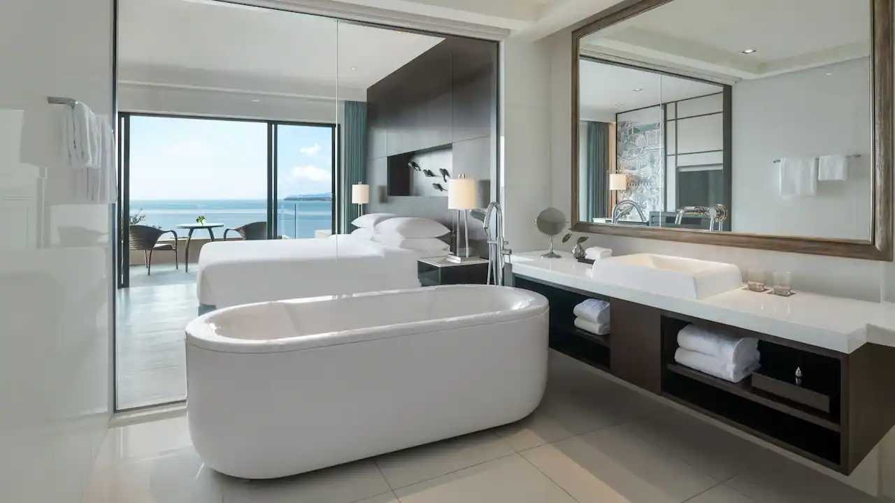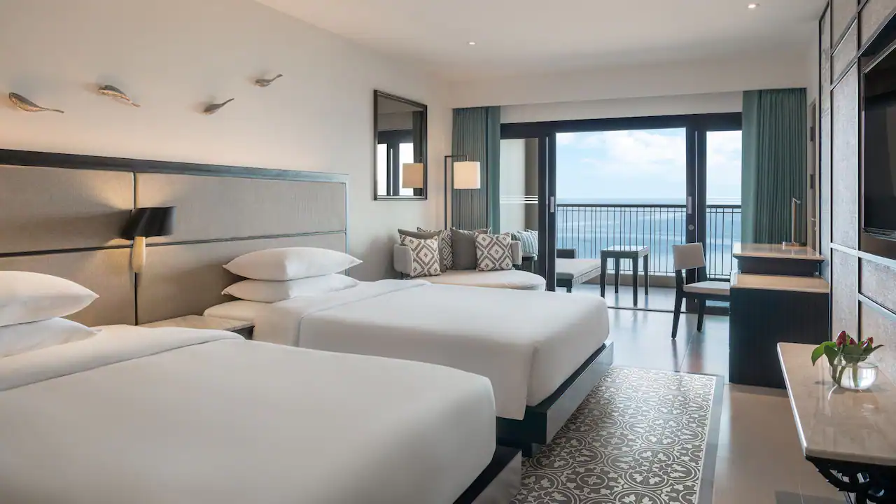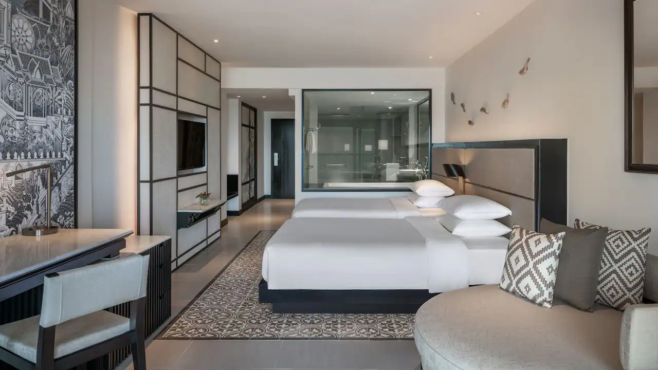 استمتعوا بمساحة رحبة تبلغ 67 مترًا مربعًا مثالية للعائلات، حيث تضم الغرفة سرير كينج في الغرفة الرئيسية، بالإضافة إلى غرفة ثانية بسريرين منفصلين لراحة الأطفال أو المرافقين. تتشارك الغرفتان حمّامًا مجهزًا بدش غامر مستقل وحوض استحمام منفصل، كما تضم المساحة شيز لونج للاسترخاء، ومكتب عمل، إضافة إلى شرفة مزوّدة بمنطقة جلوس للاستمتاع بالأجواء المحيطة.