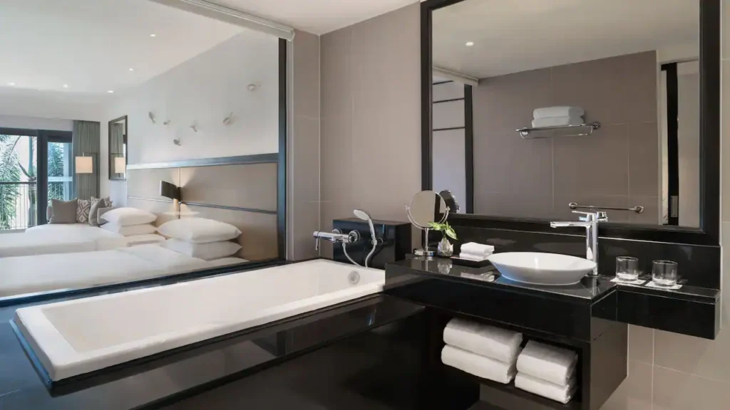 تتميز غرفنا وأجنحتنا بشرفات أو تراسات خاصة، بعضها مزود بمسابح خاصة أو أحواض جاكوزي، وتطل على الحدائق الاستوائية ومياه كامالا بيتش الفيروزية. يمكنك تعزيز إقامتك بالترقية إلى غرفة توفر دخولاً إلى ردهة ريجنسي كلوب وحوض السباحة اللامتناهي.