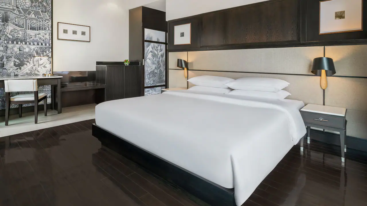 استمتع بإقامة هادئة في هذه الغرفة المريحة بمساحة 48 مترًا مربعًا، والمزوّدة إمّا بـ سرير كينج أو سريرين منفصلين وفق تفضيل الضيف. تضم الغرفة حمّامًا مجهزًا بدش غامر مستقل وحوض استحمام منفصل، إضافة إلى مكتب عمل مناسب للمسافرين.